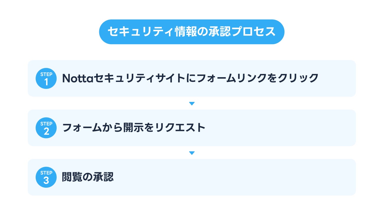 Notta公式サイトでセキュリティ情報が公開され、ユーザーに送信可能なセキュリティ情報の申請書が用意されます。ユーザーが申請書を記入し、Nottaの承認を経て、完全なアンケートフォームを取得できます。これにより、ユーザーは安心してNottaを利用できます。