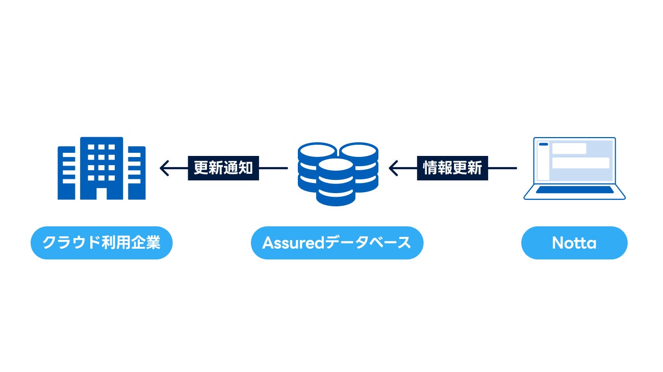 Nottaのセキュリティ情報が変更された場合、Assuredが自動的に顧客に最新情報を通知し、ユーザーへの情報共有が迅速で効果的に行われます。