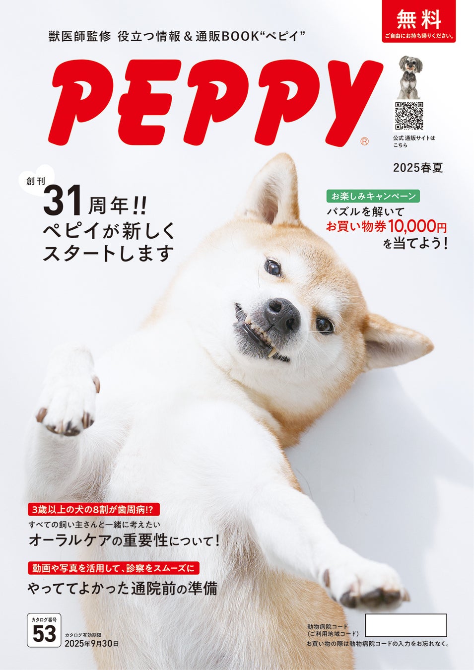 ペット用品通販の株式会社PEPPY(大阪府大阪市、代表取締役社長:平尾泰久)は、犬・猫用品専門の通販情報誌『PEPPY DOGS』『PEPPY CATS』2025年春夏号を3月10日に発刊し、全国約8,000の動物病院で無料配布を開始しました。 本誌は「愛犬・愛猫と飼い主との幸せな毎日を支えたい」という想いのもと、開業獣医師の監修・指導を受け、毎年2回発行。ペットの健康と暮らしに役立つ最新情報や厳選アイテムを紹介しています。