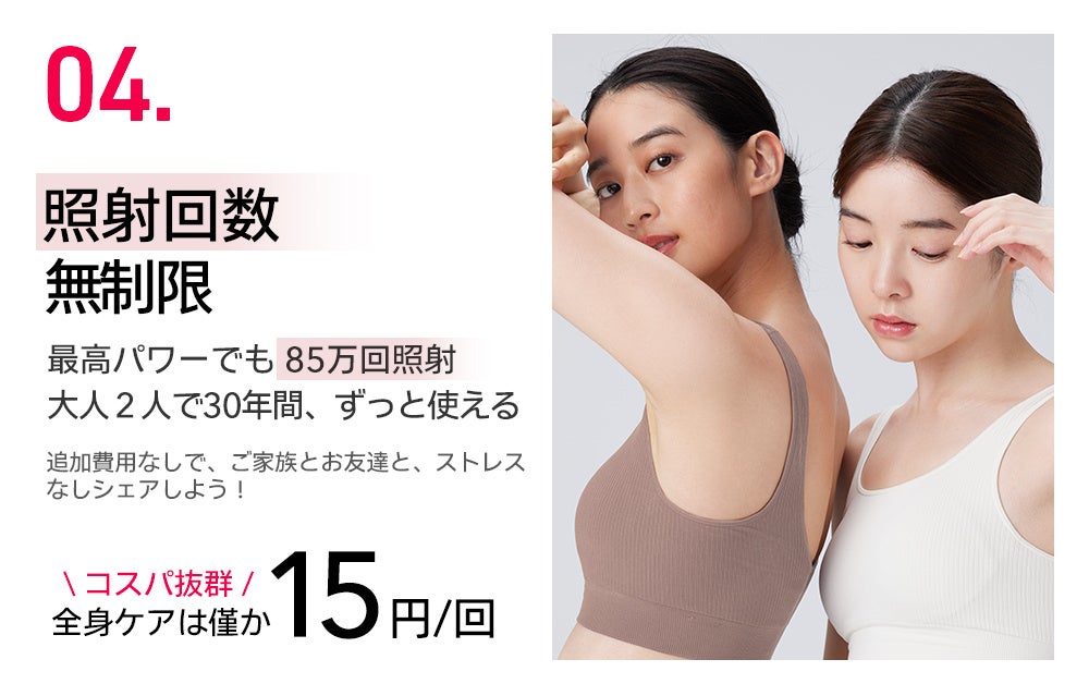 ▼特徴4|全身ケアは僅か15円/回・コスパ抜群!驚きの照射回数