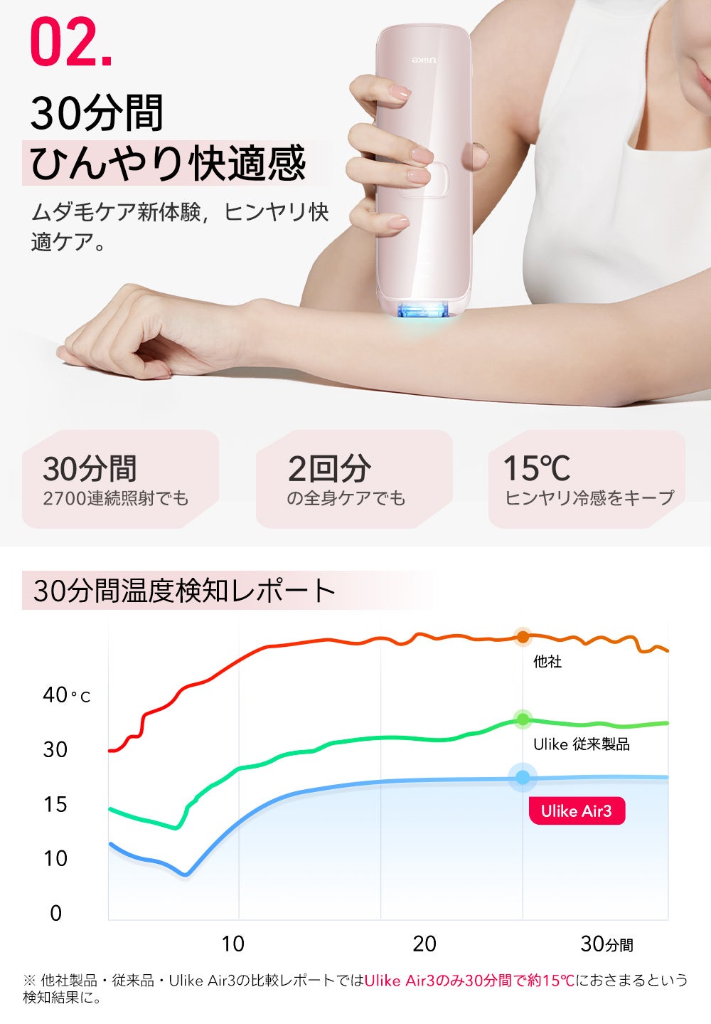 ▼特徴2|30分間肌をひんやり冷やし続ける、業界TOPレベルの冷却機能搭載!