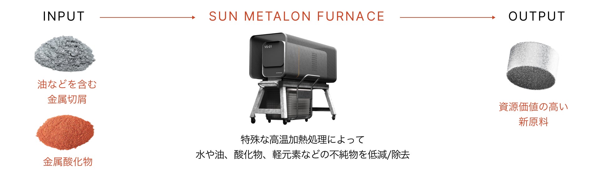 金属スクラップは、金属業界の脱炭素化に貢献するリサイクル原料として、中長期的に需要が増加すると予測されています。SUN METALONが開発・保有する独自の効率的な金属加熱技術は、従来の金属資源リサイクルプロセスと比較し、CO2排出量の低減に加え、低コストで安全・品質の向上にも寄与するとともに、さまざまな種類の金属をより価値の高い資源に蘇らせることができるもので、地球全体のCO2排出量の10%以上を占める金属製造業界に革命をもたらし、クリーンで持続可能な生産を実現します。