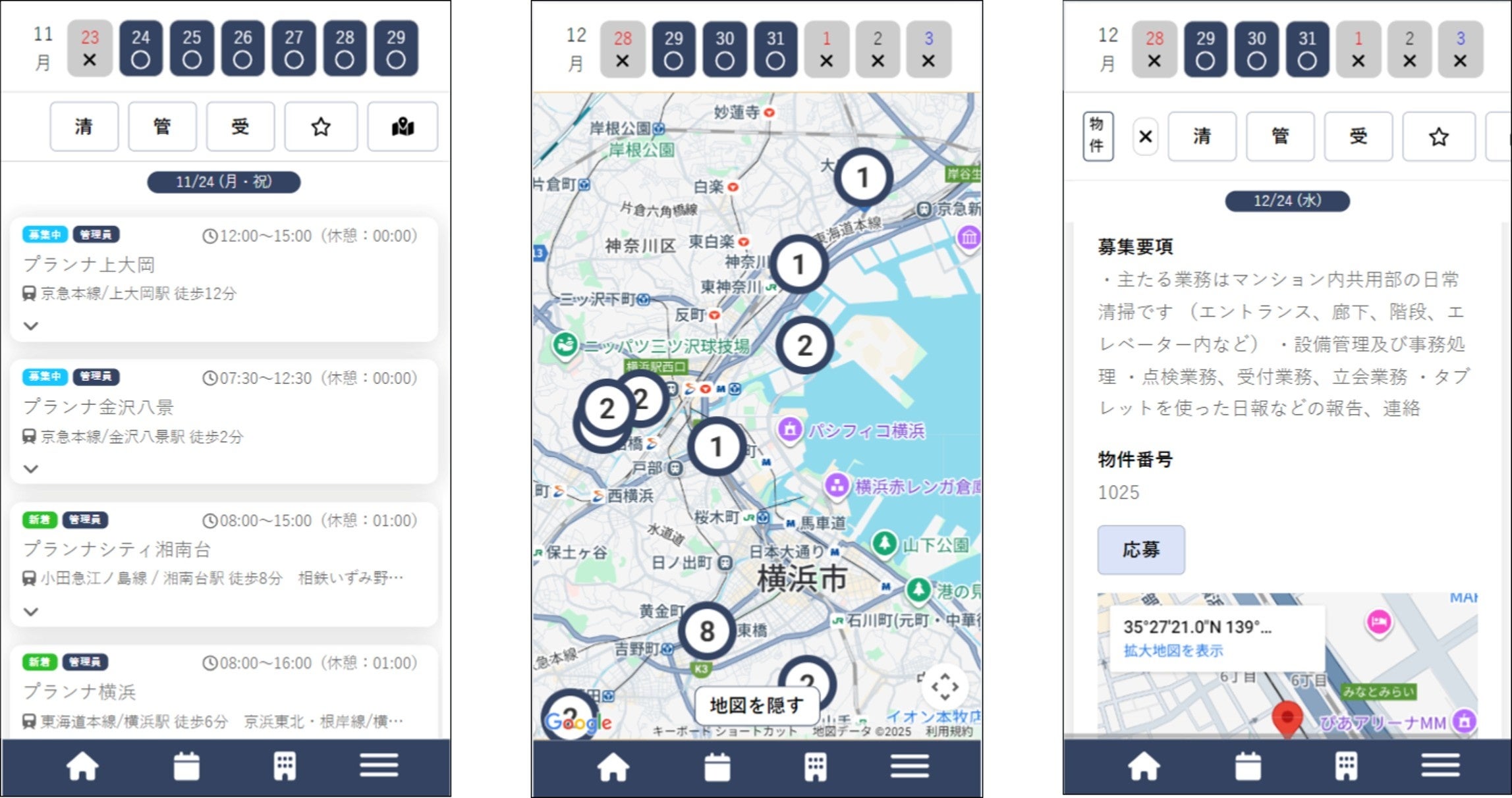 スポット勤務を希望する場合は、スマートフォンで「ポチっとわーく」サイトにアクセスし、「マンションサポーター」に登録をした後、条件に合う勤務可能案件に応募することができます。