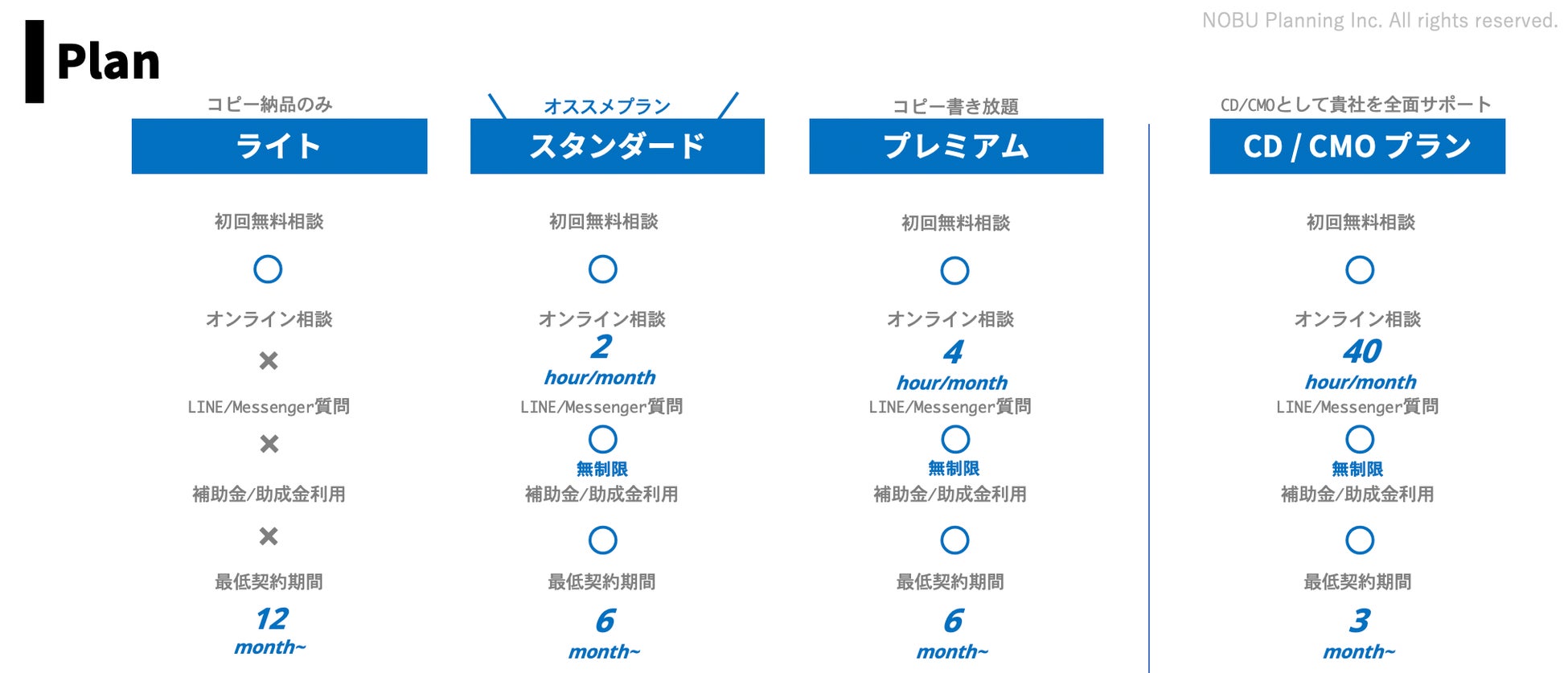 「KOTODAMA(コトダマ)」は、スタートアップ企業や中小企業からのお悩みの声を元に開始されたサービスです。「クリエーティブのクオリティが高い大手広告代理店では、制作費用やクリエーティブフィーが高額すぎて発注できない。」という企業様の悩みを解決します。初期費用を抑えることで、発注側のハードルは下げつつも、サブスクで費用をいただくことで、クオリティの担保が可能です。新規事業をスモールスタートで開始・検証したいという企業様にとっても、導入しやすいサービスになっています。また、コピーをとにかくたくさん必要とする企業や、業務委託で社外クリエーティブディレクター、社外CMOを探している中小企業様、スタートアップ企業様へのプランもご用意しています。スタンダードプラン以上のプランをご契約の企業様については、補助金や助成金の申請対応も可能です。