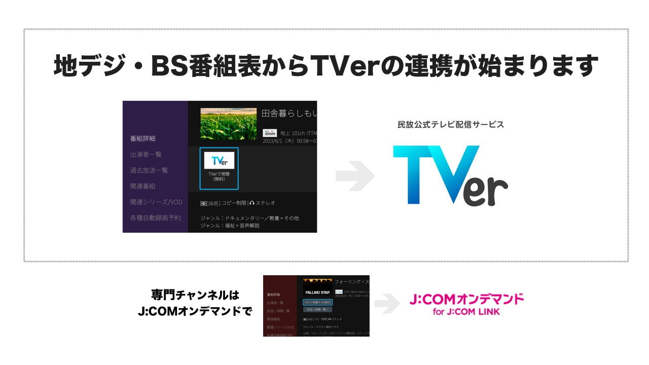 J:COMのセットトップボックスからTVerへの連携開始GガイドからTVerの地上波放送やBS放送の過去放送が視聴可能に!