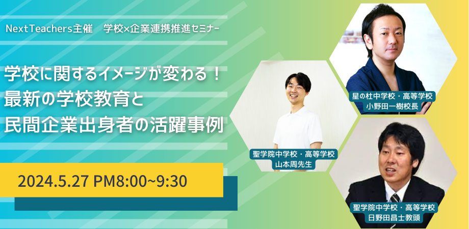 セミナータイトル:「学校に関するイメージが変わる!最新の学校教育と、民間企業出身者の活躍事例」