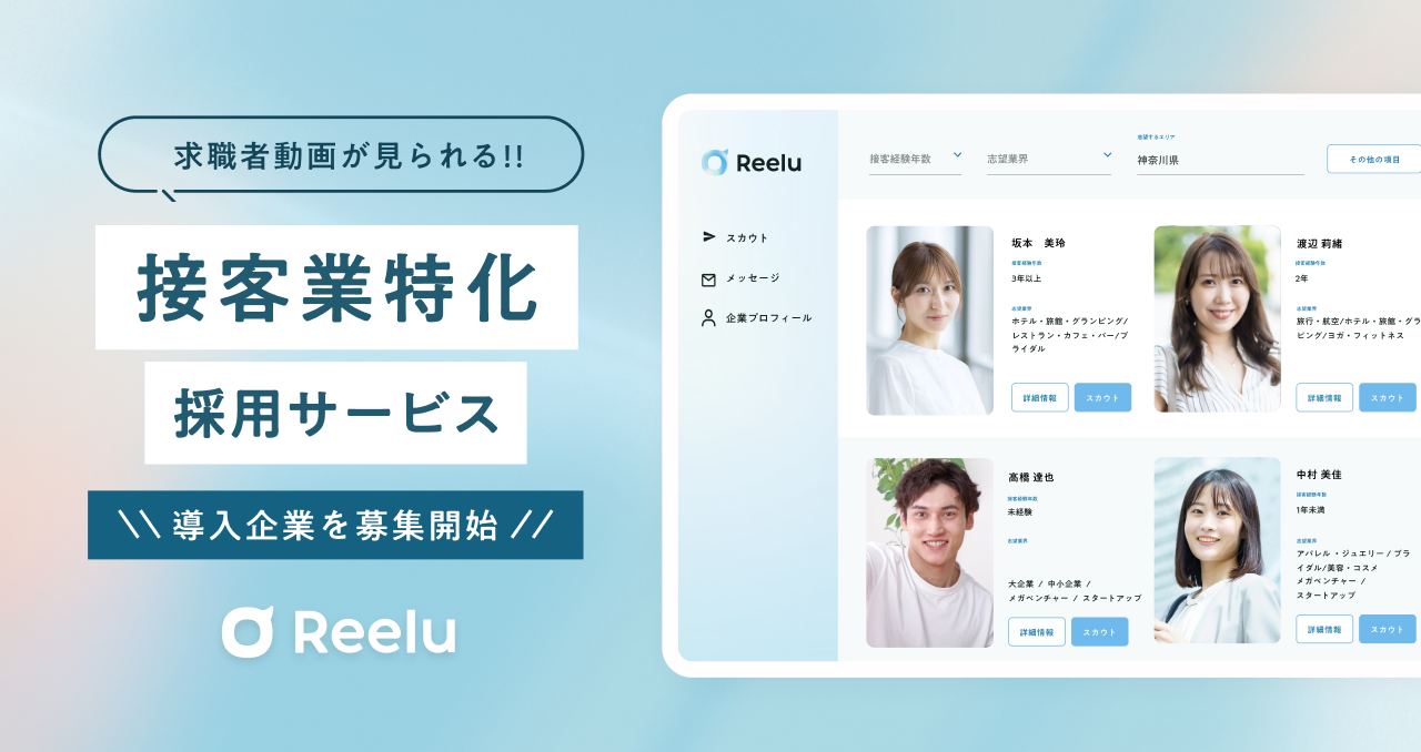 接客業特化の採用サービスReelu β版の利用企業を募集開始