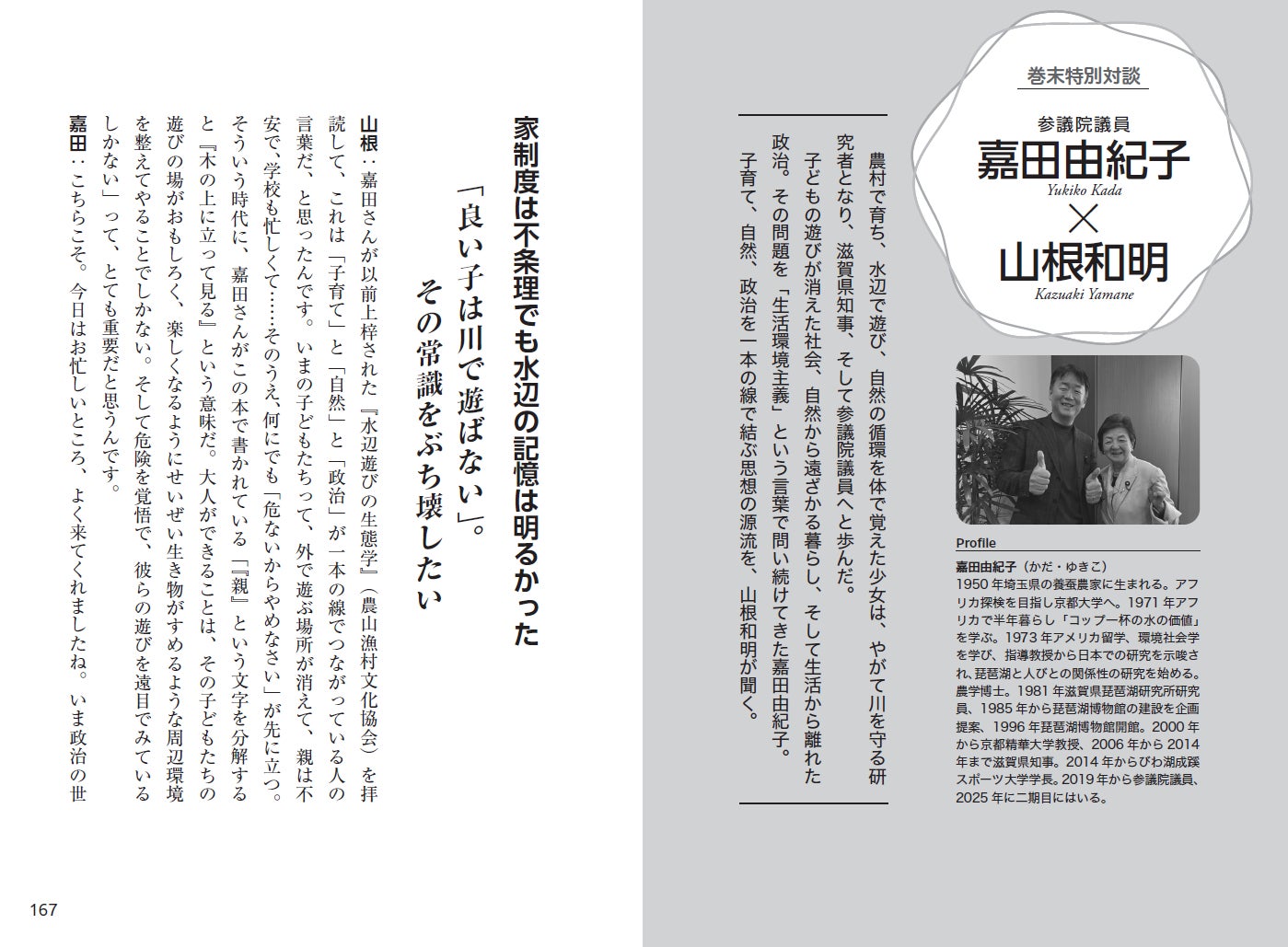巻末には、子育て支援と水辺の環境問題に政治の側から取り組んできた、元滋賀県知事・参議院議員の嘉田由紀子氏との特別対談を収録しています。
