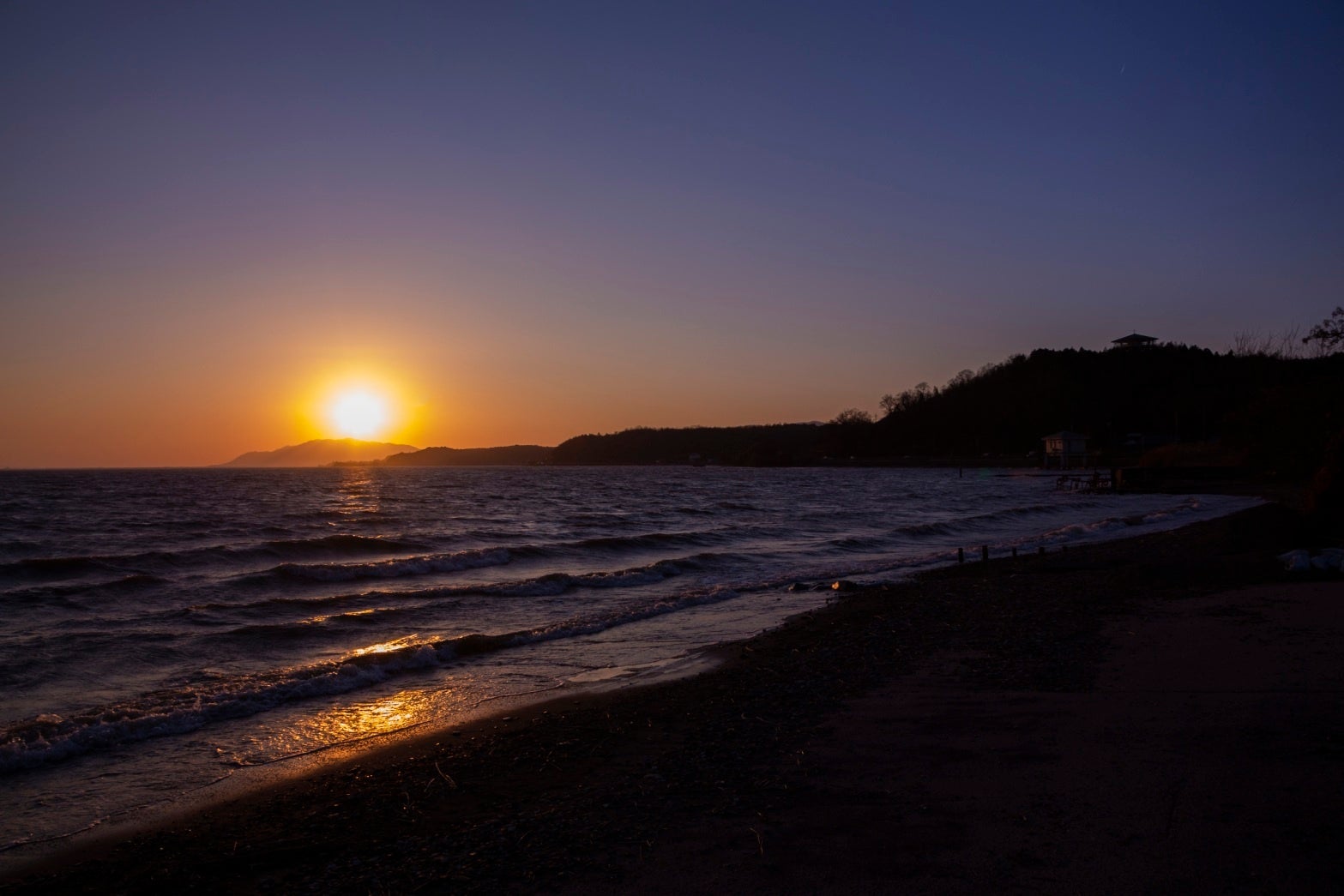 秋から冬にかけて、湖面に映る夕日を一望できるスポットです。