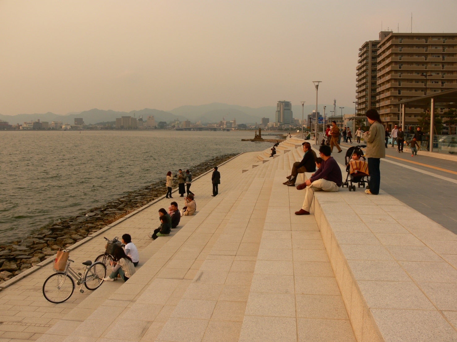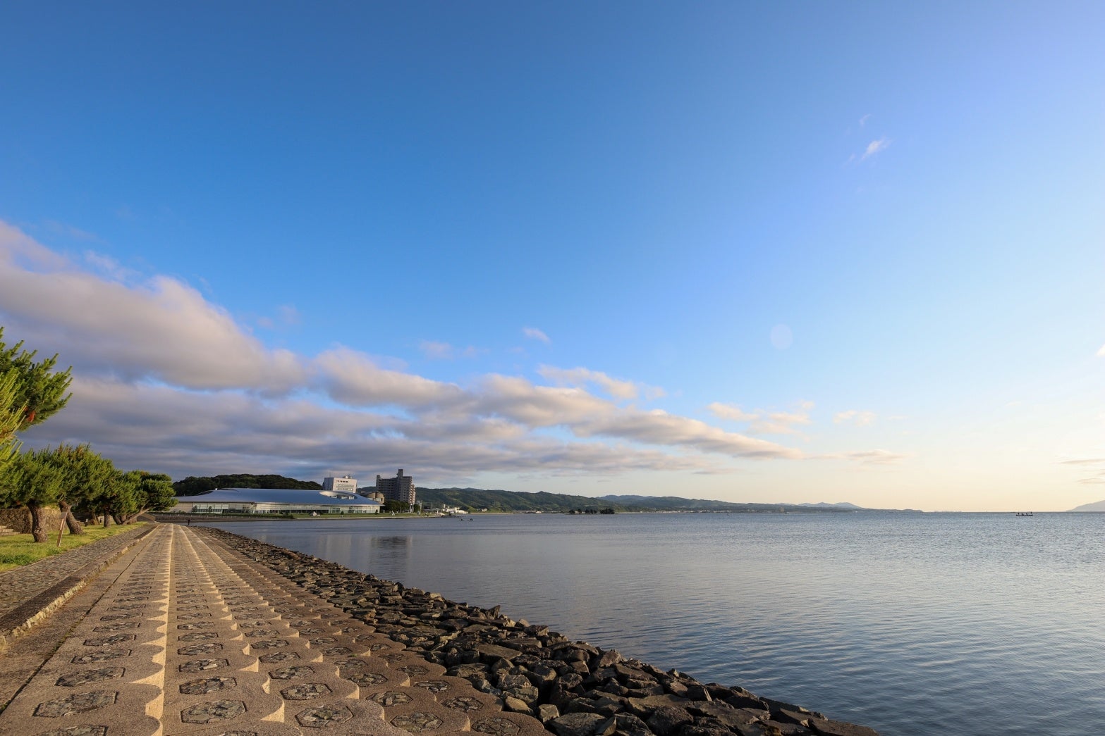 宍道湖との親水護岸も整備され、夕日をゆっくり鑑賞できるベンチもあります。