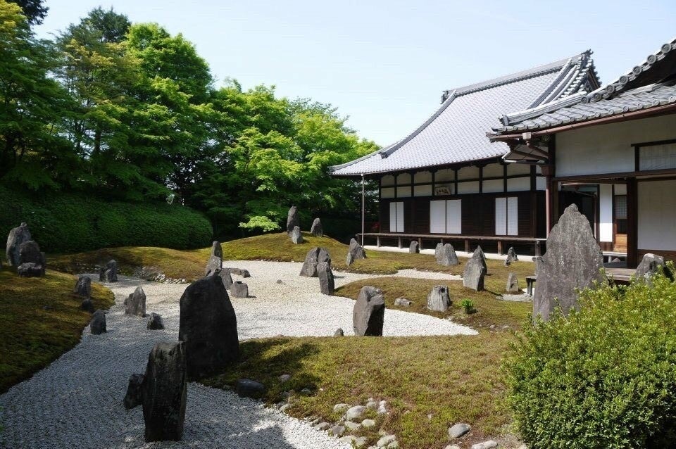 「虹の苔寺」の異名をとり、苔と砂の見事な調和を見せる主庭、「波心庭」は、昭和の作庭家・重森三玲の手になる枯山水庭園で、東福寺方丈庭園とともに昭和十四年につくられた。