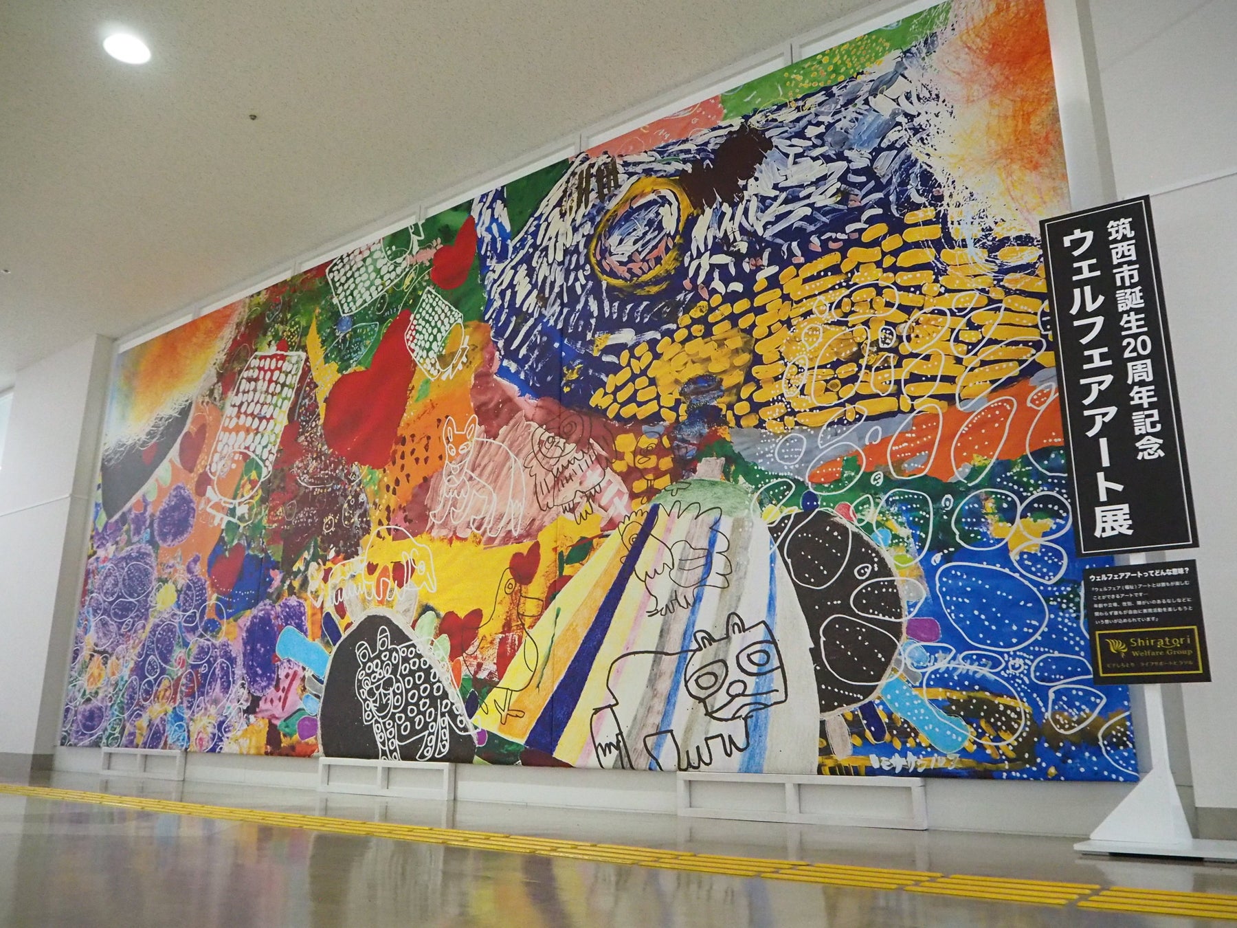 制作後 : 福祉デザイナーユニットNODDが縦3m×横7mの巨大アートパネルをデザインし、「ウェルフェアアート展」第2弾として現行パネルと差し替え、展示予定