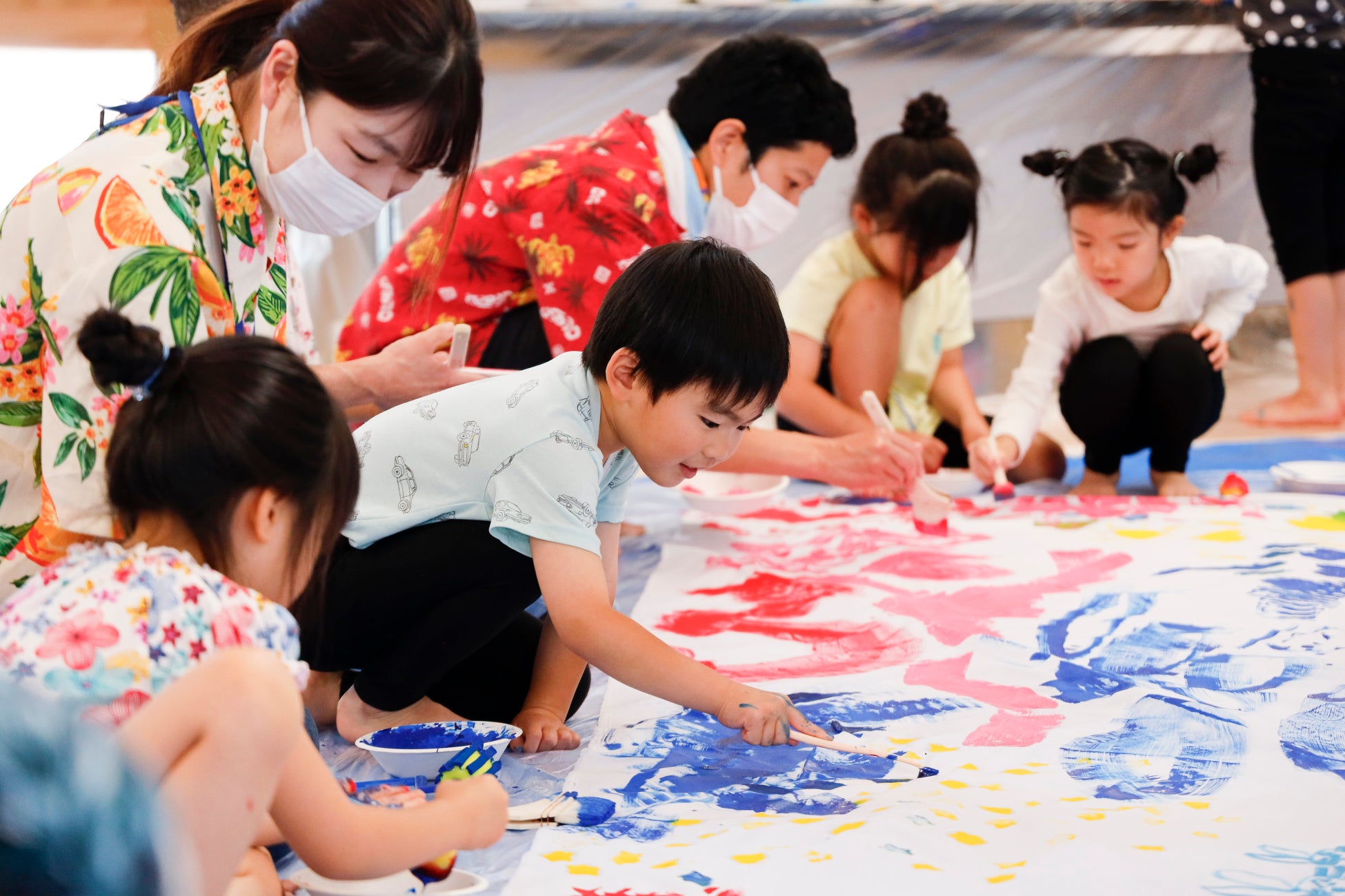 内容 : 大判の布に自由に絵を描くアートワークショップ
