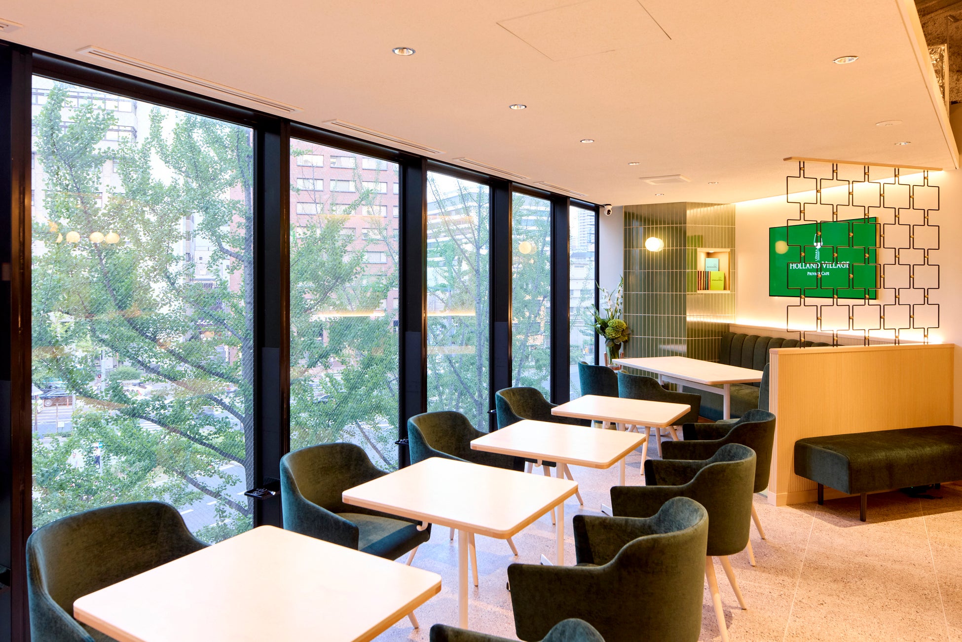 さらに、カフェのアイコンであり、特別でラグジュアリーな時間を作り上げるゴールドを基調としたセンターライトは、OSAKA店のために作られた世界に一つだけの照明です。壁一面の大きな窓から見える大阪の四季折々の景観や、店内のスクリーンから流れる海外の時事ニュースなど、他では味わえないHolland Village Private Communityが創り上げるカフェをこの機会にぜひご堪能ください。