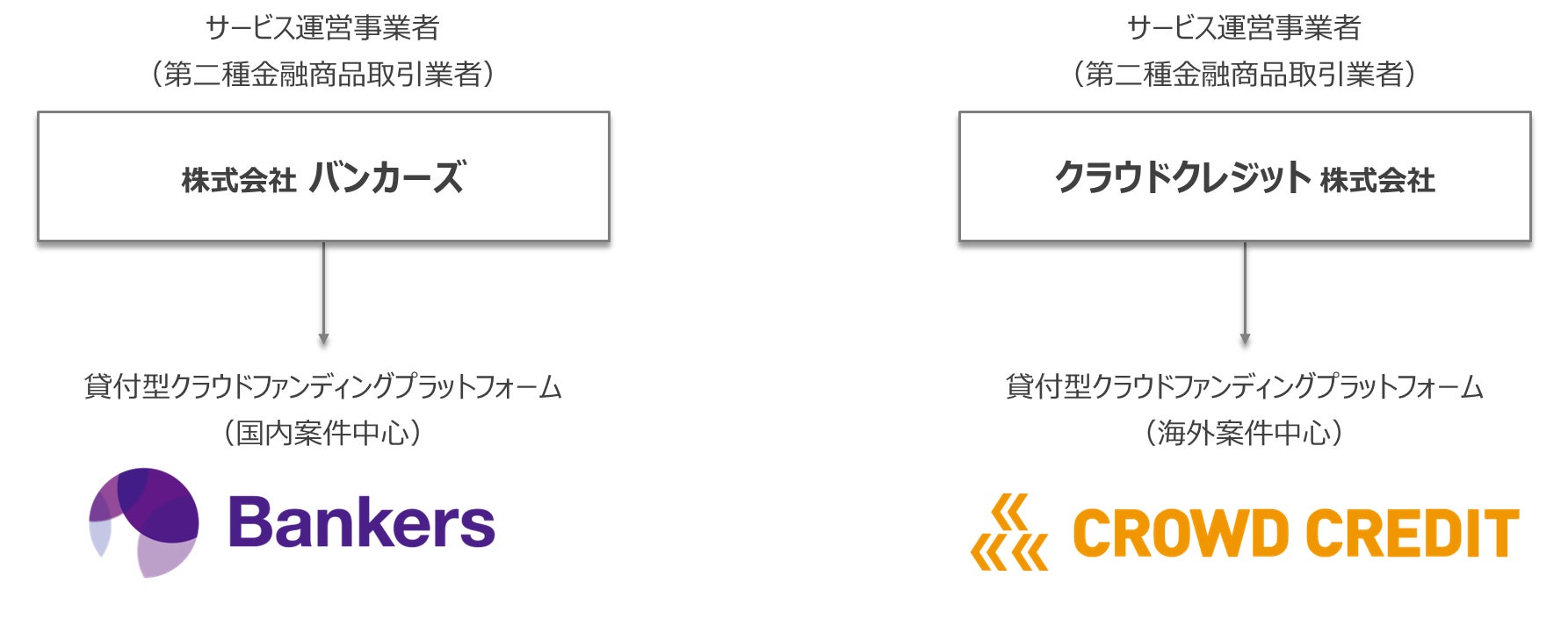 今回のサービス運営事業者の変更により、当社グループが第二種金融商品取引業者として運営する貸付型クラウドファンディングプラットフォーム『Bankers』『CROWD CREDIT』は、2024年4月1日以降は、いずれもバンカーズが運営してまいります。