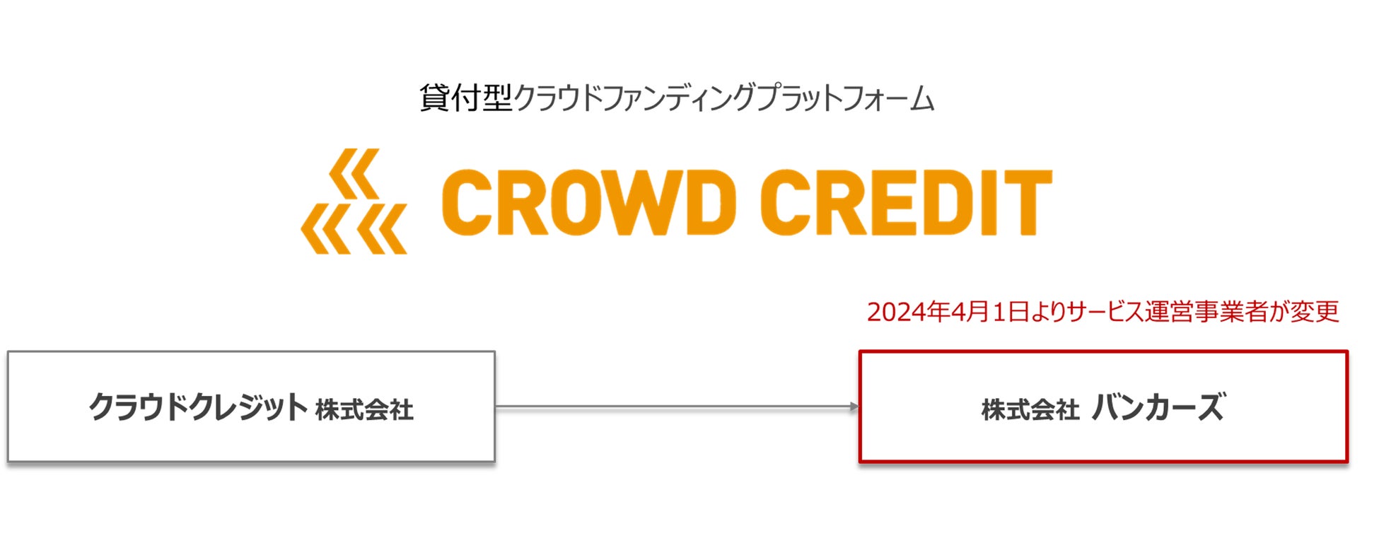 2024年4月1日をもって、『CROWD CREDIT』のサービス運営事業者(貸付型ファンドの募集取扱者)は、クラウドクレジットからバンカーズに変更となります。