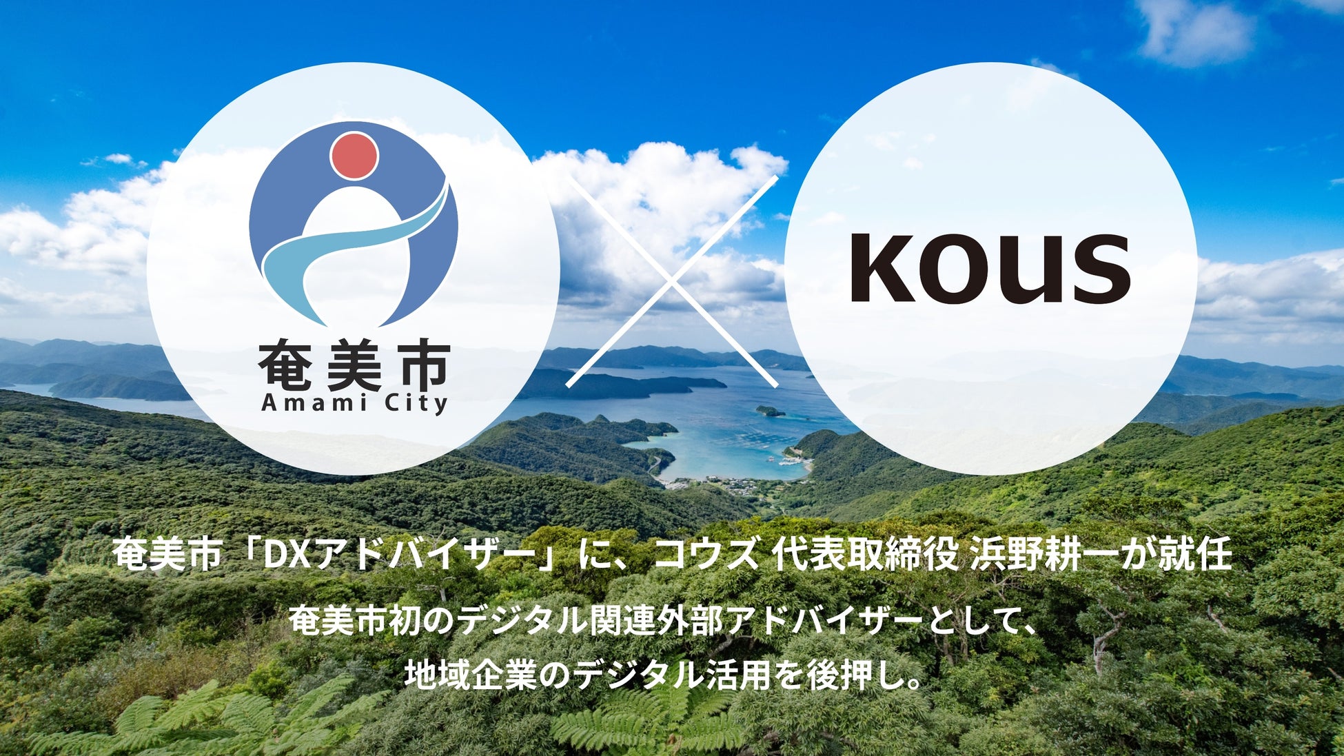 株式会社コウズ(本社:大阪府大阪市西区、以下「コウズ」)は、鹿児島県奄美市(市長:安田壮平 以下、「奄美市」)が新設した「地域情報化アドバイザー(DXアドバイザー)」に、代表取締役 浜野耕一が就任したことをお知らせします。