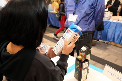 ワークショップ「どれがリサイクルできるかな?紙パックでリサイクルチャレンジ!」の様子