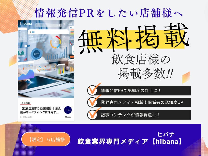 【フードビジネス応援メディア-hibana-】無料で記事を作成しメディアに公開!飲食業界の活性化のため、情報発信PRの新サービスを開始します。