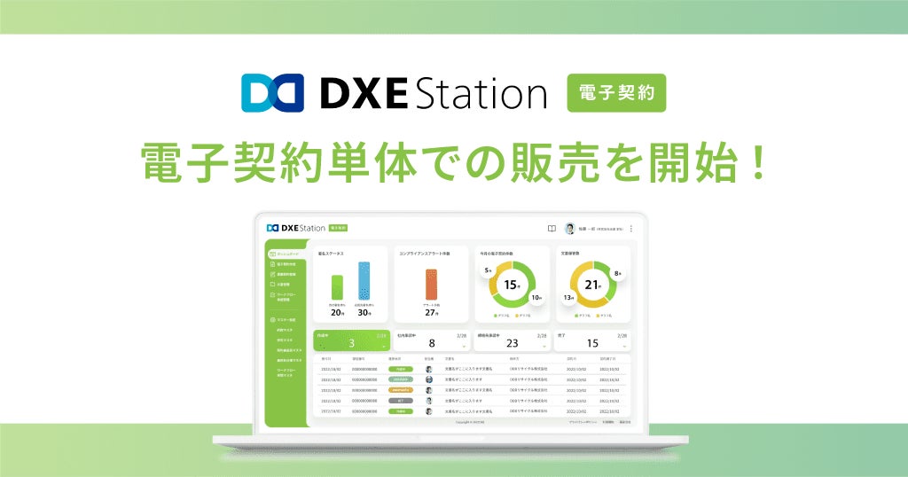 DXE株式会社(所在:東京都千代田区、代表取締役:小山 逸朗)は、産業廃棄物処理業務の効率化サービス『DXE Station』の有償オプションサービスとして提供していた『DXE Station 電子契約』において、単体での販売を開始いたしましたことをお知らせいたします。