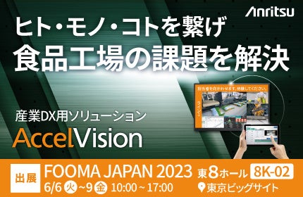 アンリツ株式会社(社長 濱田 宏一)は、産業DX向けソリューション「AccelVision」を、世界最大級の食品製造総合展 FOOMA JAPAN 2023に出展し、食品製造業界や食品工場が直面する課題に対する解決策を具体的なユースケースとともに紹介します。