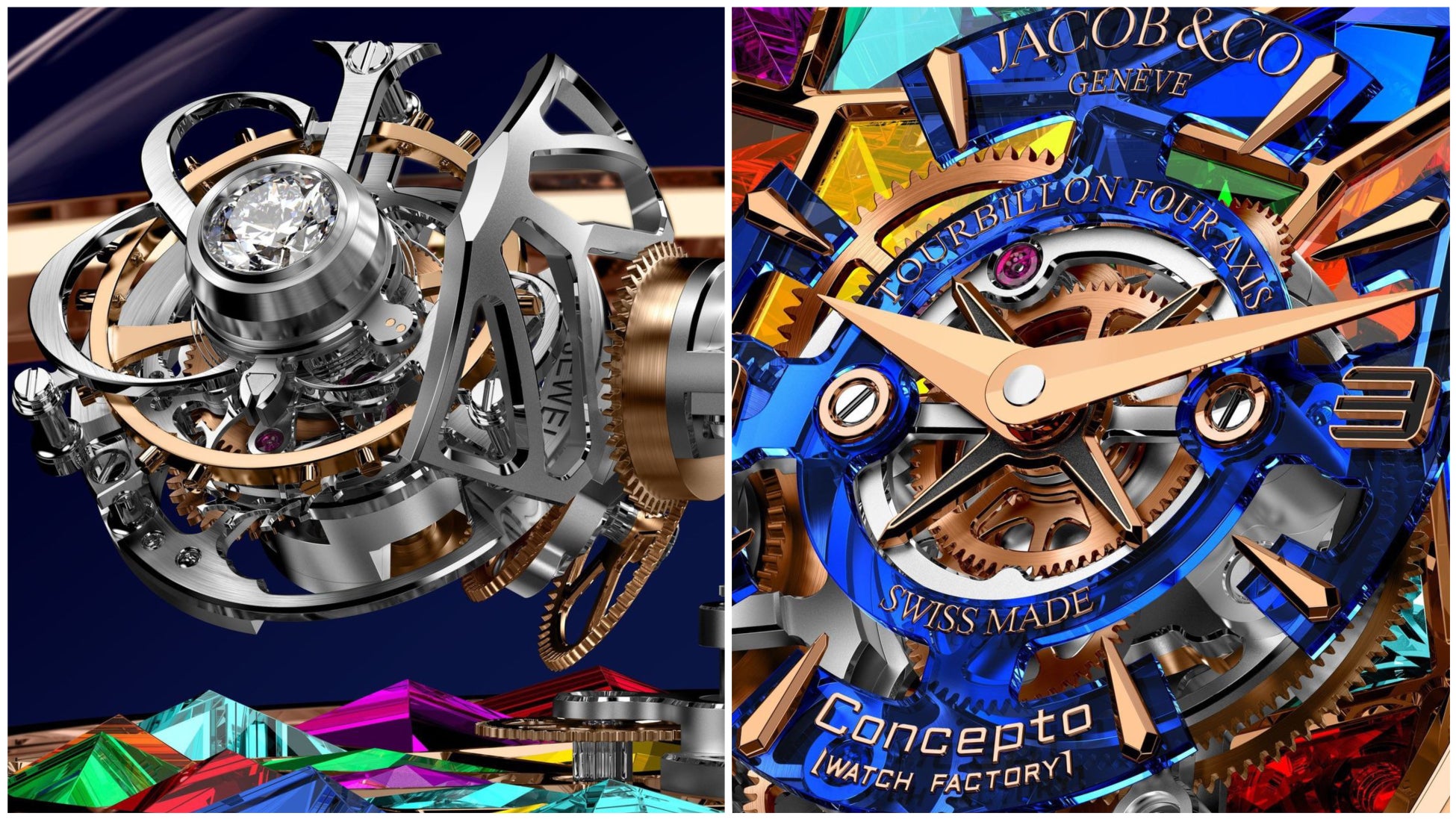 この時計はジェイコブ&コー×コンセプト・ウォッチ・ファクトリーの共同製作であり、コンセプト・ウォッチ・ファクトリーはジェイコブ&コーのメインムーブメント・パートナーとして知られています。