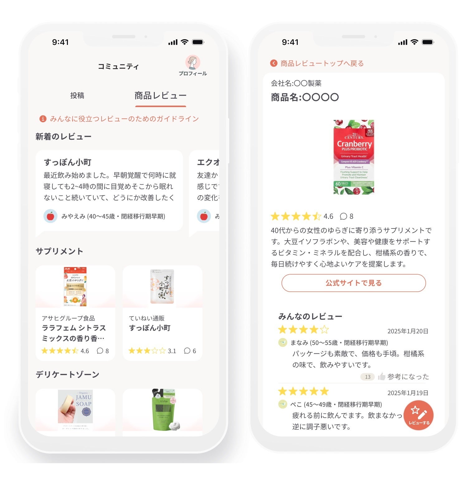 更年期世代向けヘルスケアアプリ「Lumino(ルミノ)」を運営する株式会社menopeer(本社:東京都渋谷区、代表取締役:木村琴子)は、アプリ内に更年期世代が実際に使用したセルフケア商品の感想を共有・閲覧できる「商品レビュー機能」を新たに追加しました。