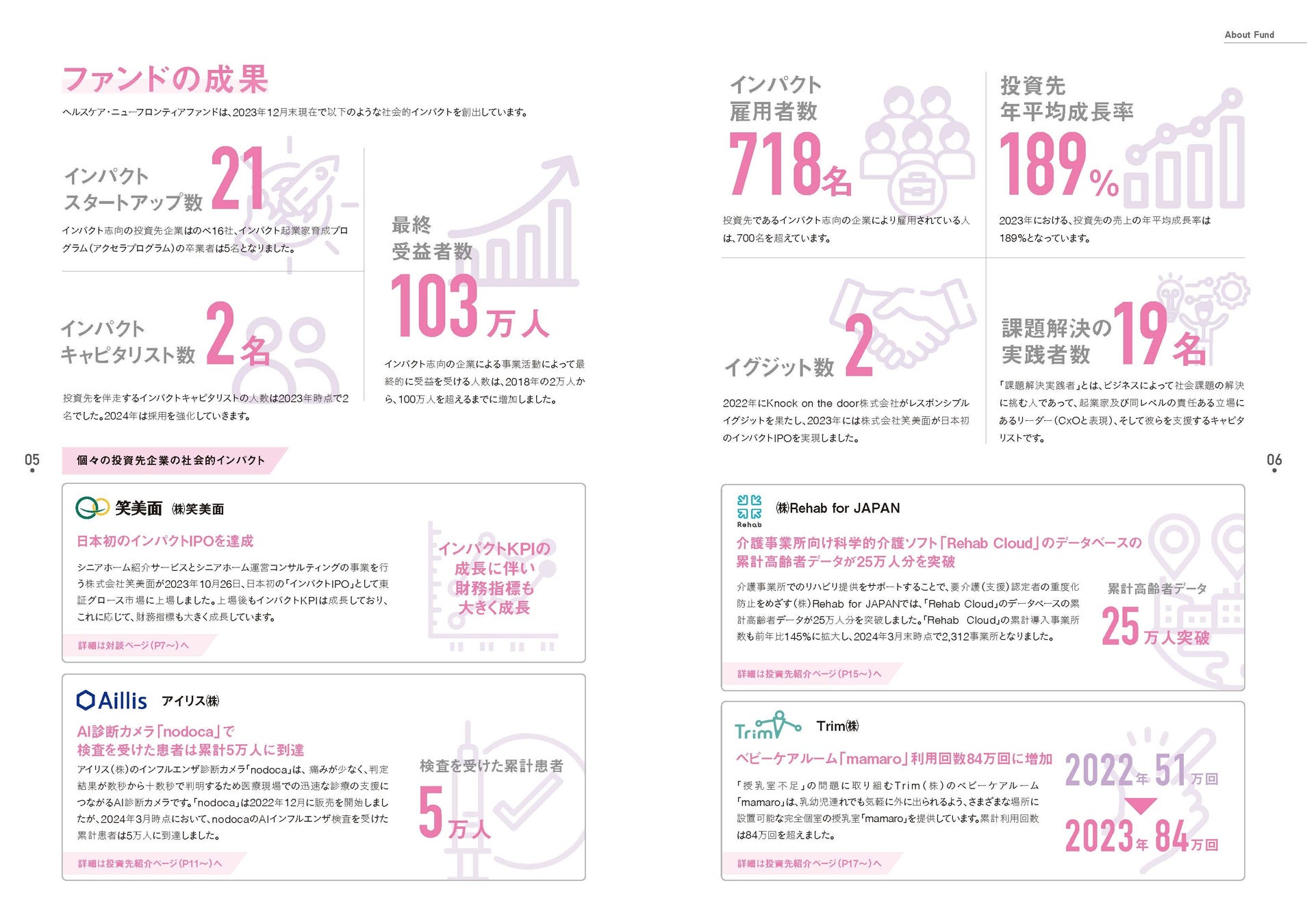 株式会社キャピタルメディカ・ベンチャーズは、6期目となる「ヘルスケア・ニューフロンティア・ファンド インパクトレポート 2023」を2024年6月17日に発行しました。