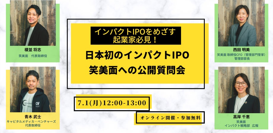 オンラインイベント「インパクトIPOをめざす起業家必見!初のインパクトIPOを実践した笑美面への公開質問会」