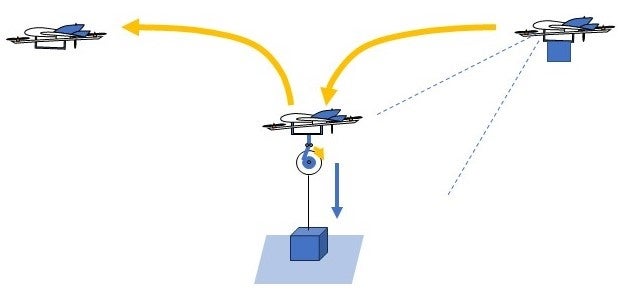エアロセンスのVTOL機「エアロボウイング」に、神戸大学が開発した物体投下装置を搭載