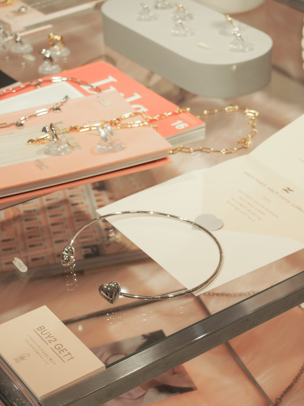 会場には大きなリボンが目を引く「Bold ribbon ring」をはじめとする人気の既存アイテムはもちろん、新コレクション「each heart, each story collection」もラインナップ。クラブメイトの声から生まれたブランド初のイヤカフ「Motif ear cuff (heart)」も登場します。