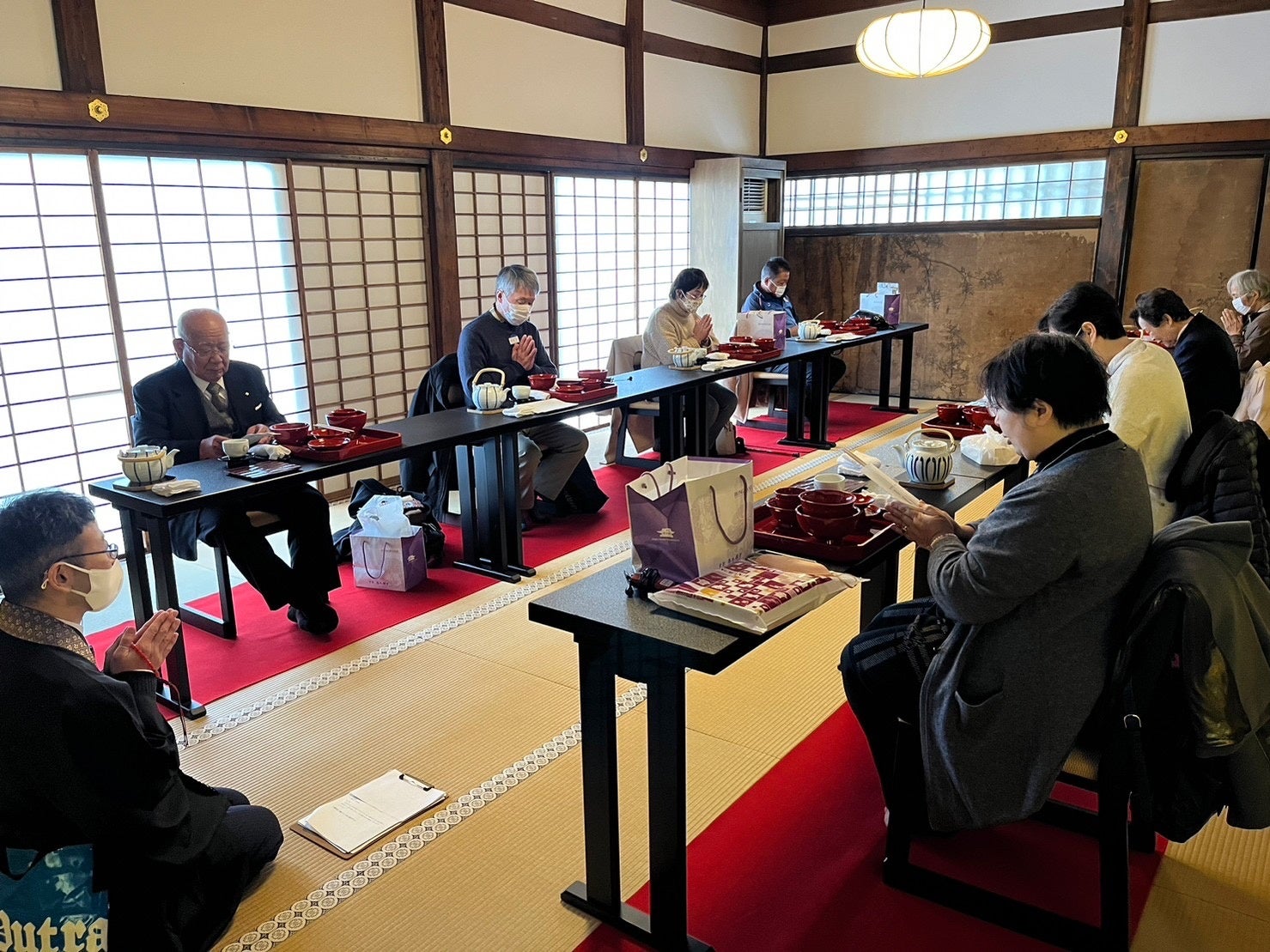 本願寺伝道院(10時 現地集合/正面玄関にて受付/通常非公開の伝道院1階にて法話聴聞、腕輪念珠作り体験)…西本願寺(国宝・飛雲閣、書院等を解説付きで特別拝観/書院内でお斎[精進料理での昼食]をご用意/「お西さんを知ろう!」境内拝観/14時20分 現地解散予定)