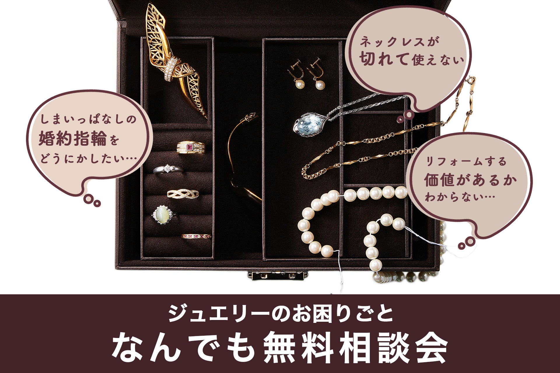 「ネックレスが切れてしまった」「指輪のサイズを直したい」「婚約指輪をペンダントにリフォームしたい」など、ジュエリーのお困りごとはありませんか?