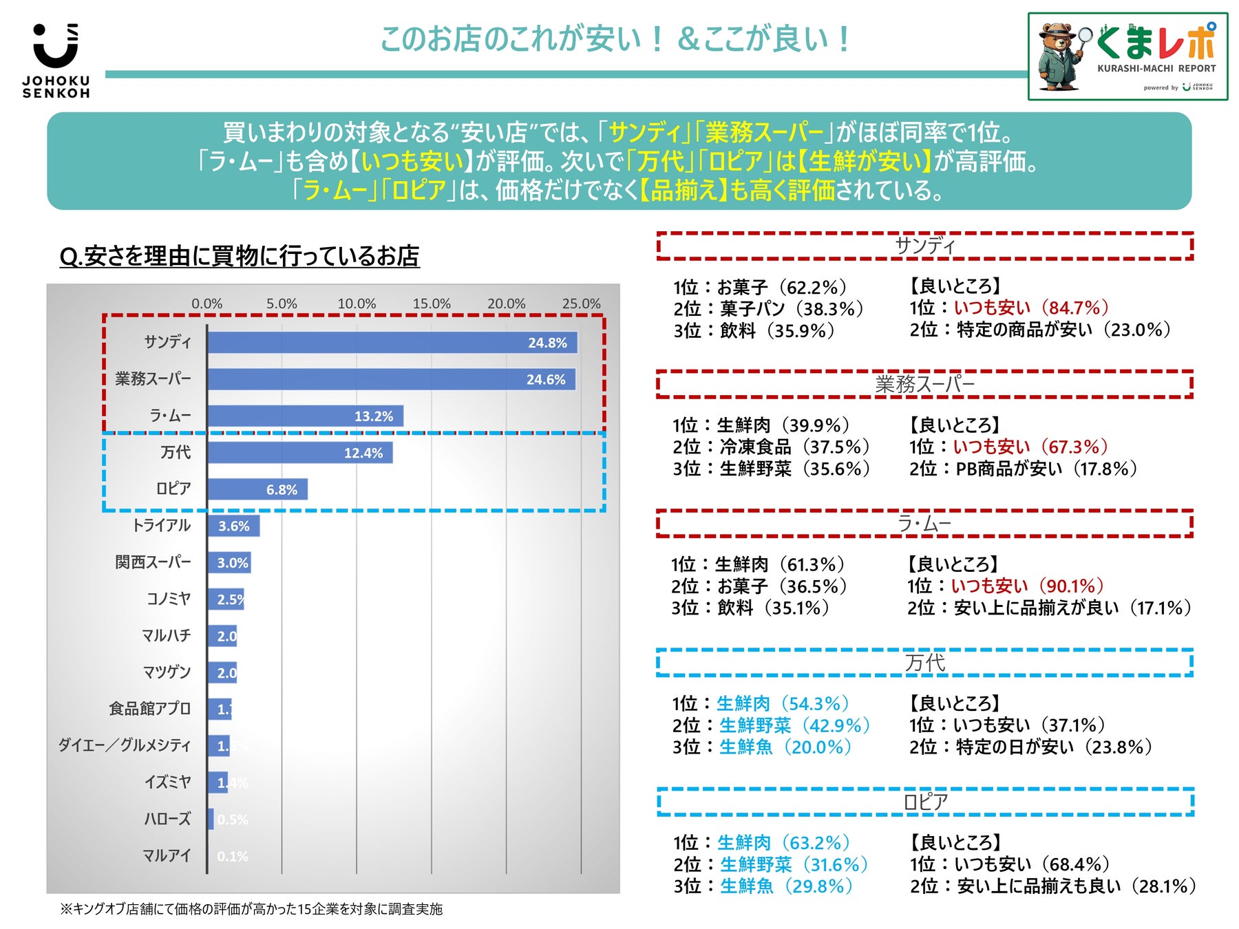 弊社独自の人気店調査ランキング「キングオブ店舗 スーパーマーケット編」の結果も交えつつ、物価高騰による生活者の購買行動の変化や、望まれるお店などをくらし・まちレポート"くまレポ"としてお届けする。