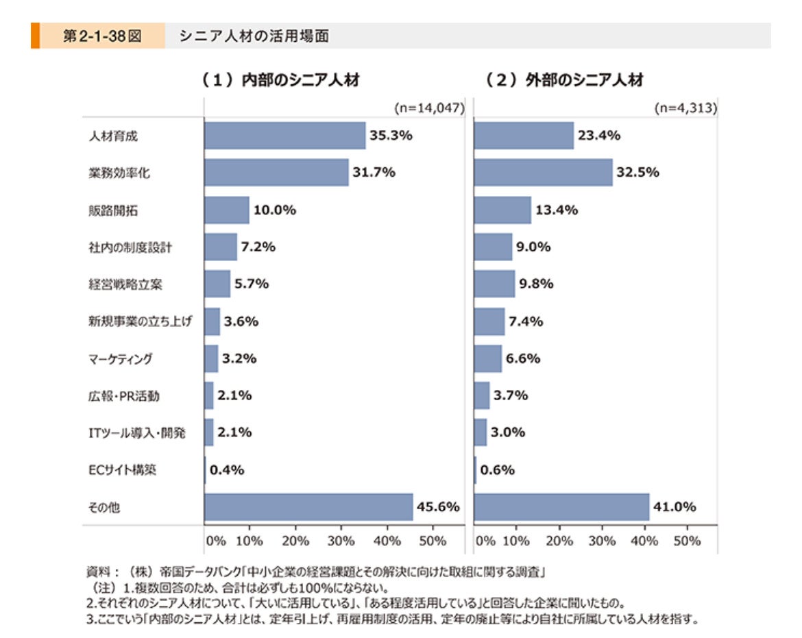 〈シニア人材の活用場面(内部のシニア人材 n=14,047 外部のシニア人材 n=4,313)〉