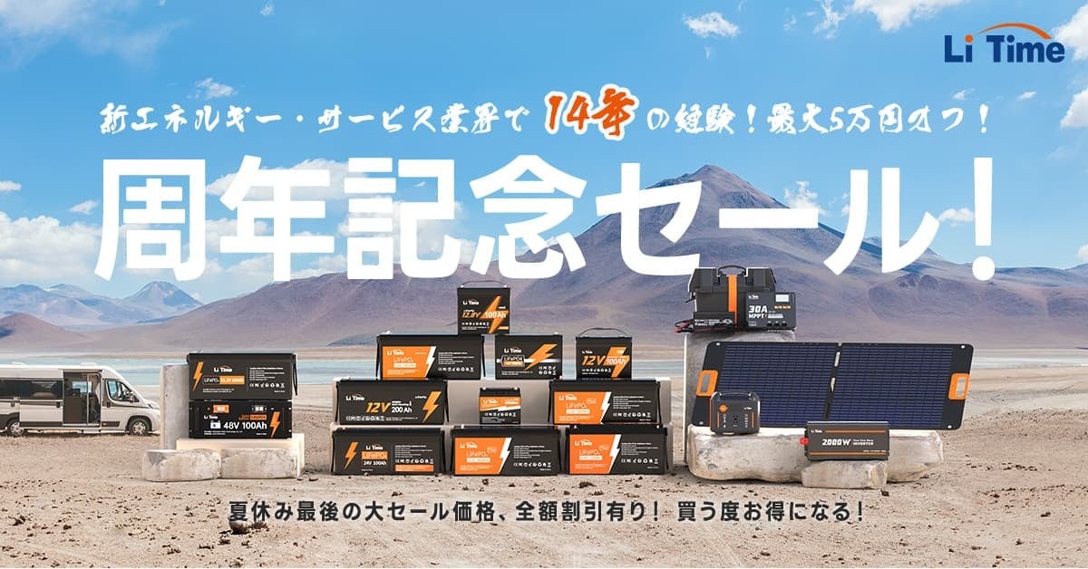 『LiTime・リタイム』大容量・高出力のバッテリーを買うチャンス!48V100Ahリチウムイオンバッテリーが最大15%OFFで販売中!