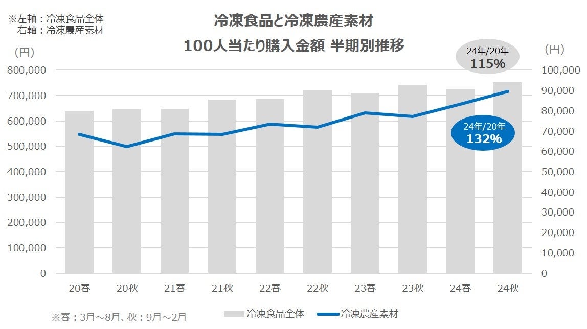 カルビーポテトは、全国有数のじゃがいもの産地である北海道・十勝に拠点をもち「世界一のポテトカンパニーへ。」というビジョンのもと、品種開発から調達、商品開発・販売まで一貫してじゃがいもに関する事業に取り組んでいます。近年、伸長する冷凍食品の中でも冷凍野菜は、長期保存が可能な点や、必要な分だけ手軽に使える利便性の高さから注目を集めており※1、当社もこのような市場のニーズに応えるべく冷凍じゃがいもの展開を開始しました。