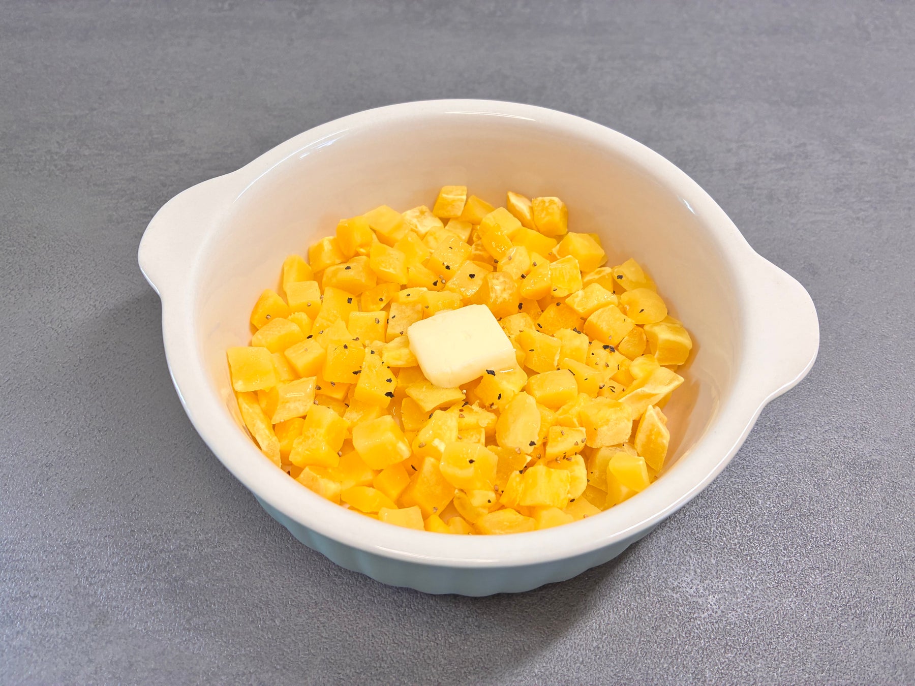 皮をむき、10mm角サイズにカットしているため、そのまま調理にお使いいただけます。また、電子レンジで加熱するだけでやわらかく仕上がるので、ポテトサラダのようにつぶす工程が必要な料理も手軽に作ることができます。
