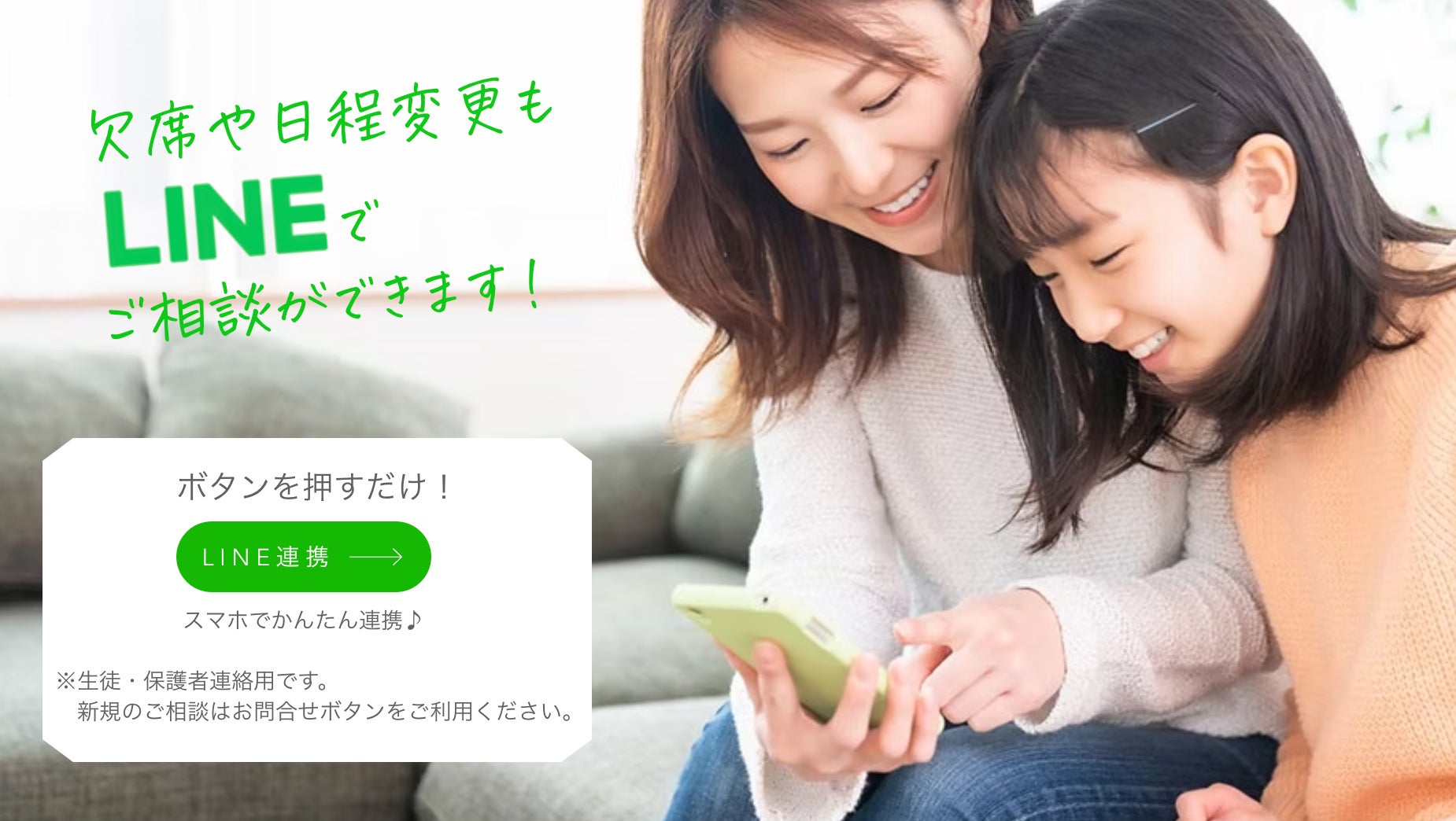 日々の困ったことはラインで相談!遅刻や欠席連絡もラインで連絡できます!大変使い勝手がいいと、こちらも大変好評です。