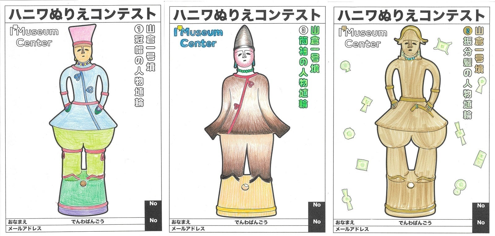 また、小さなお子様には、連日開催中の「ハニワぬりえ」がおすすめです。完成したぬりえは、特別展期間中掲示させていただき、人気投票を行います。上位入賞者にはプレゼントもあるため、奮ってご参加ください。