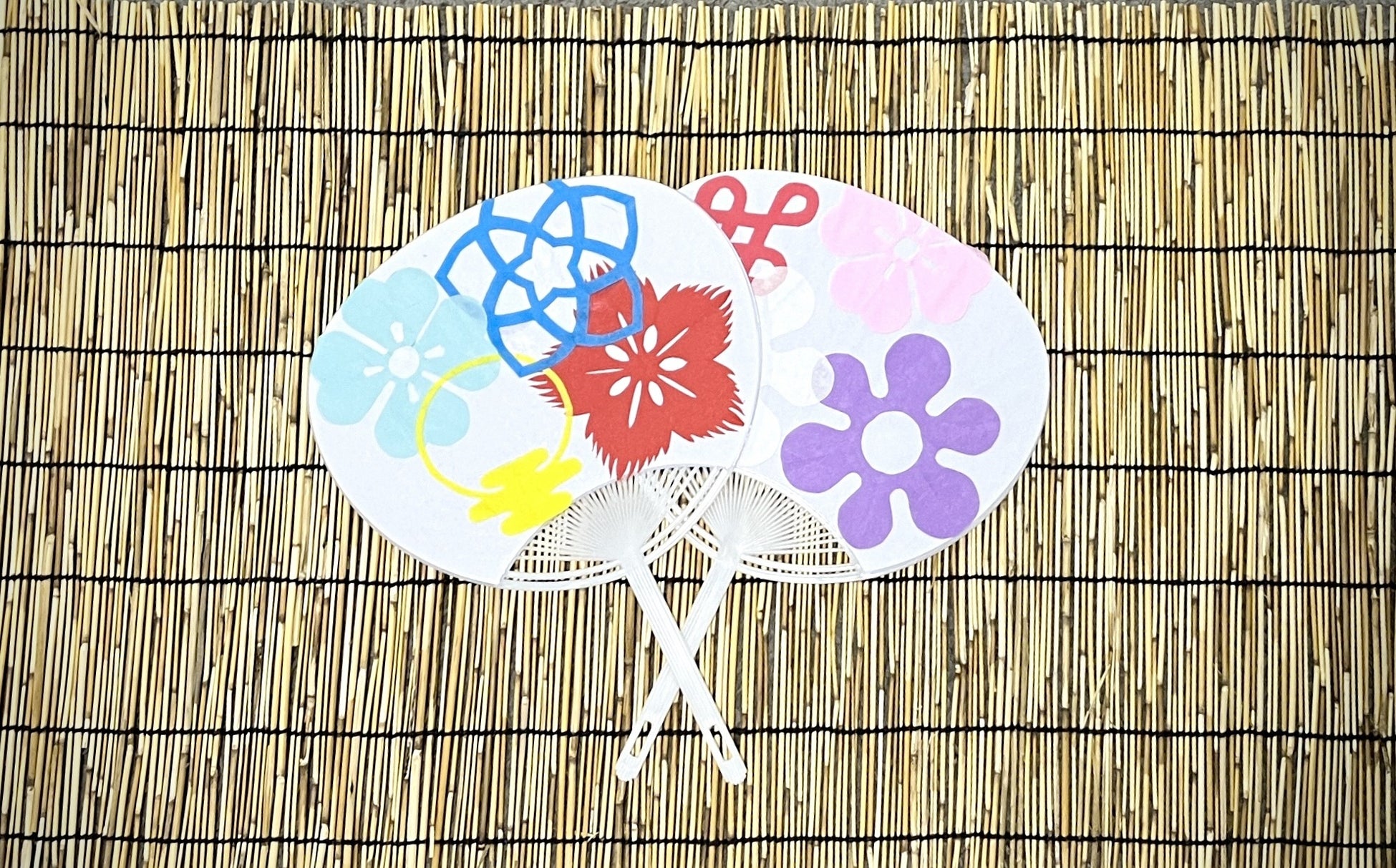 畳んだ紙を切り抜けば、江戸伝統の紋様が広がる。切った図柄を台紙に貼って、オリジナルうちわを作ろう!