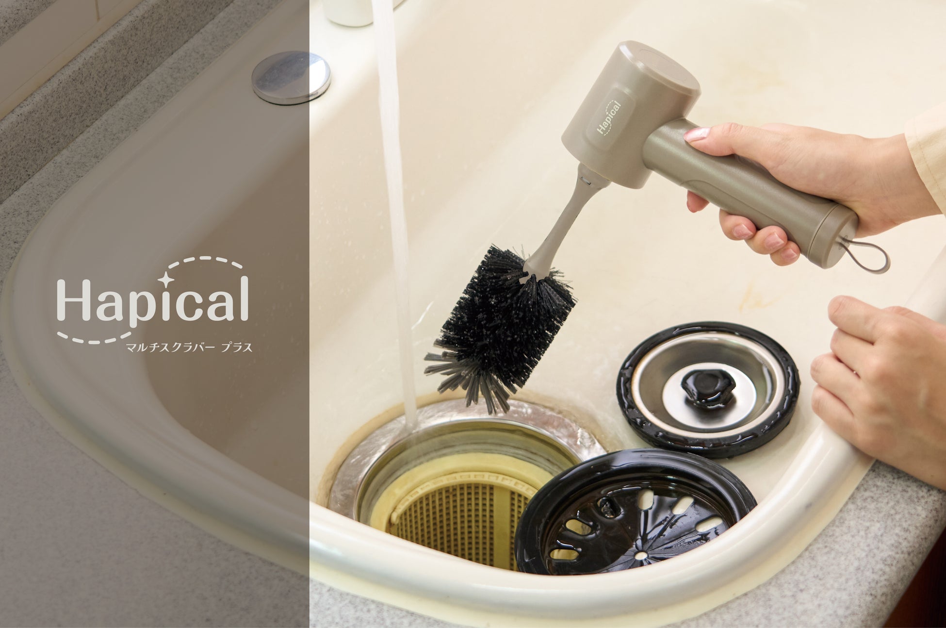 水回り掃除の悩み「直接触りたくない排水口掃除」を解決! ロングブラシが付いた「ハピカルマルチスクラバープラス」誕生