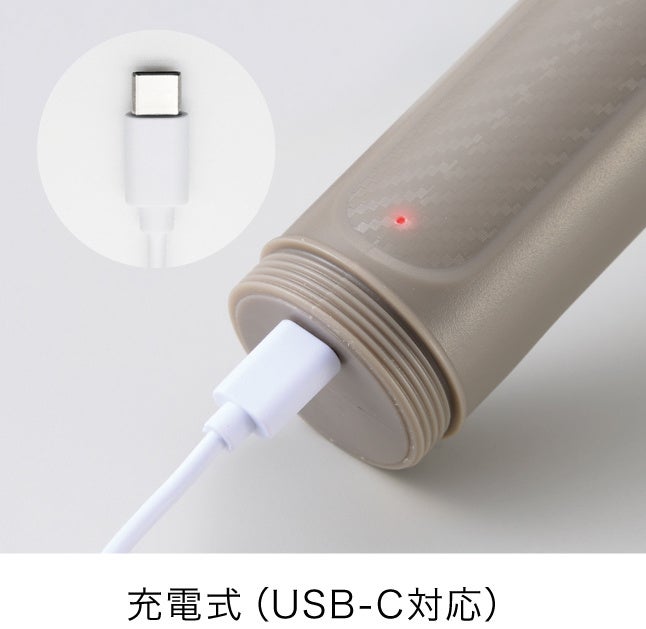 また、充電も専用のアダプターを必要としないUSB充電式で設計しました。