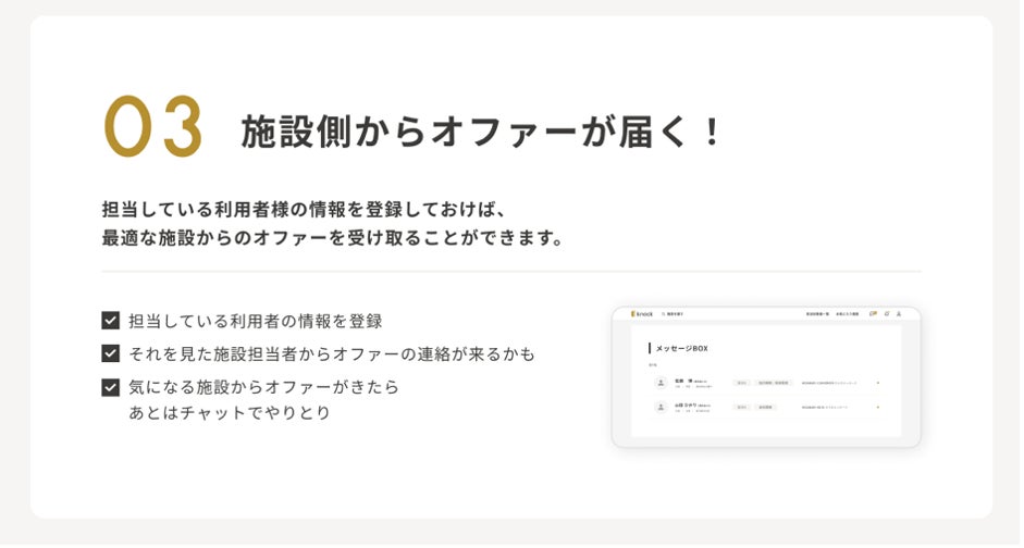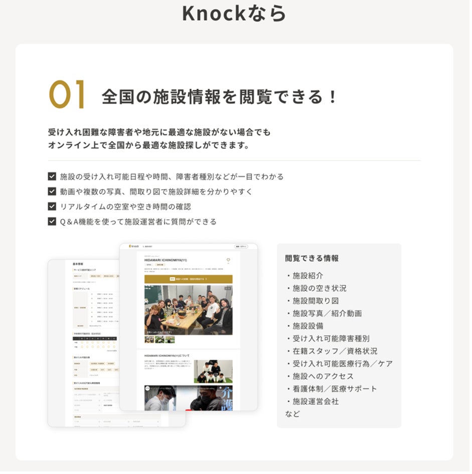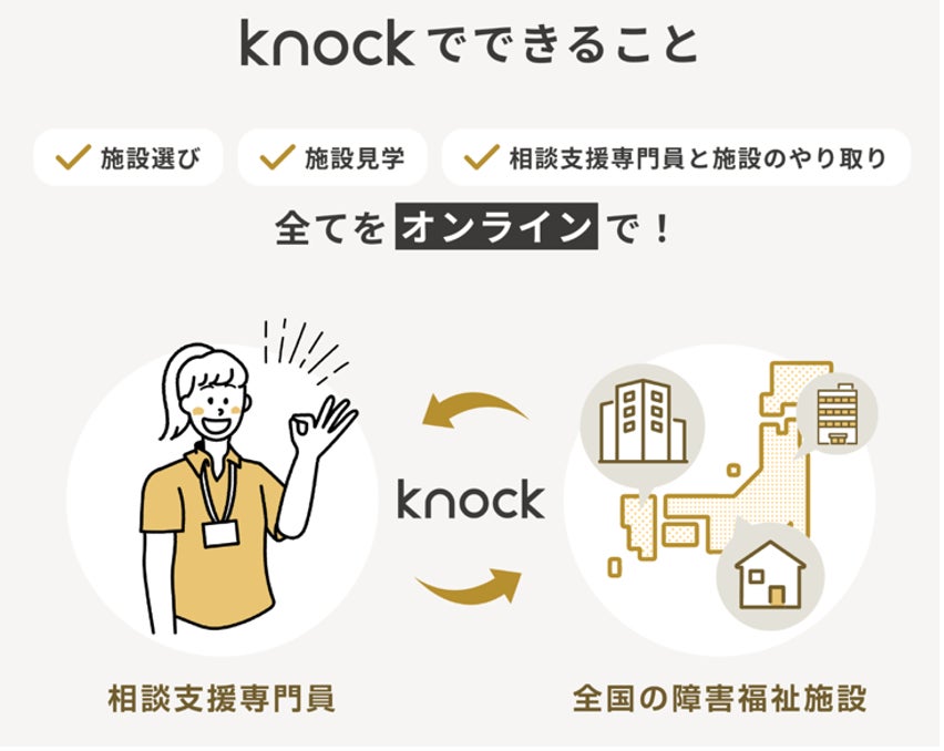 HIDAMARI GROUPを運営する株式会社ビジョナリー(代表取締役社長/丹羽 悠介、本社:愛知県名古屋市)は、2023年8月中旬に相談支援専門員が利用者の為に最適な障害福祉サービスを見つけられ、また自社施設を提案したい相談支援専門員にアプローチできる業界初のオンラインサービス『knock(ノック)』の提供開始を予定しています。