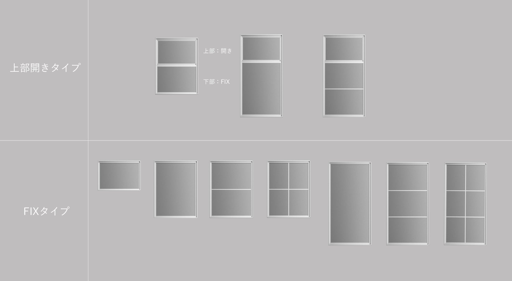 ■製品タイプ FIXタイプ(格子あり/格子なし)、上部上開きタイプ。