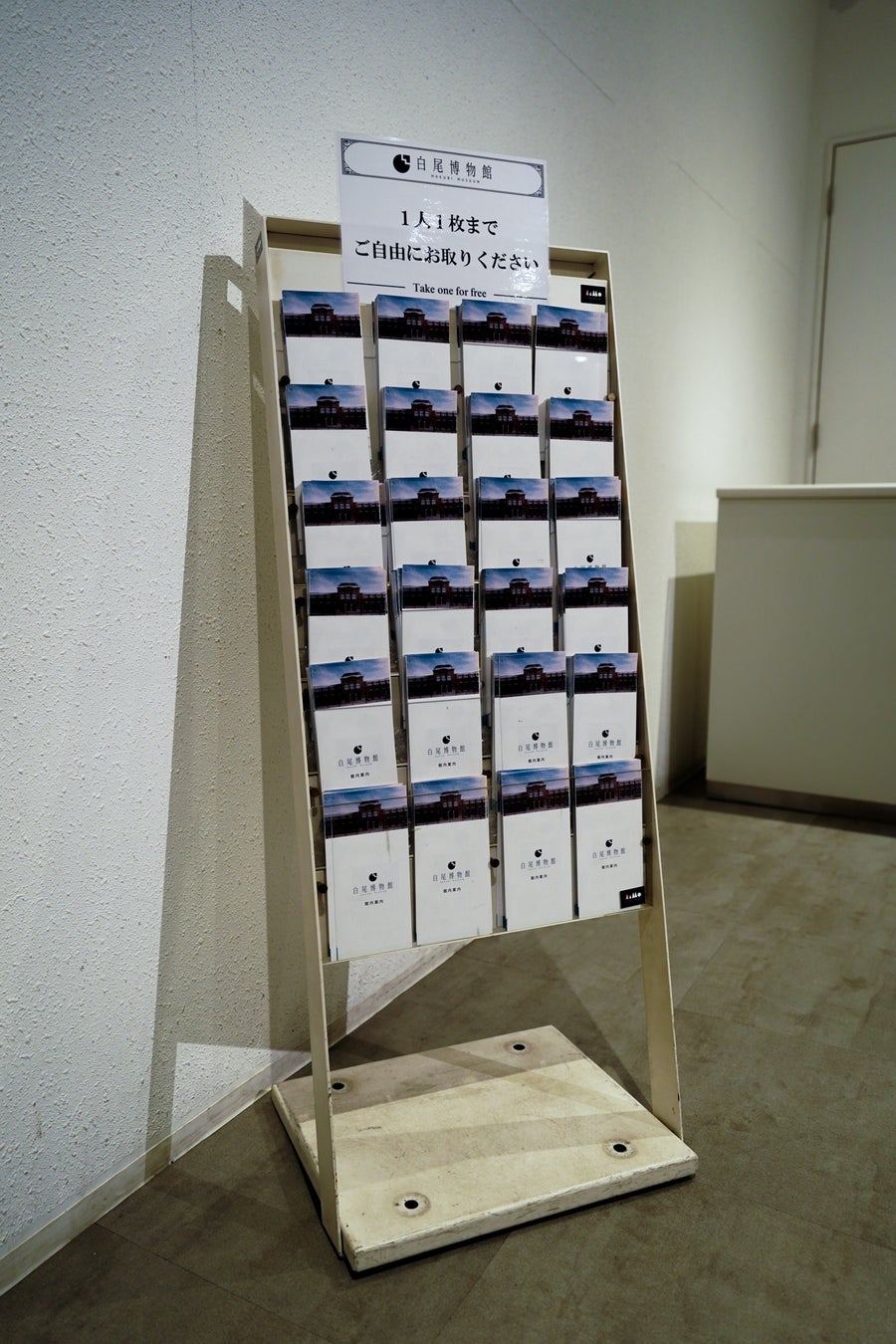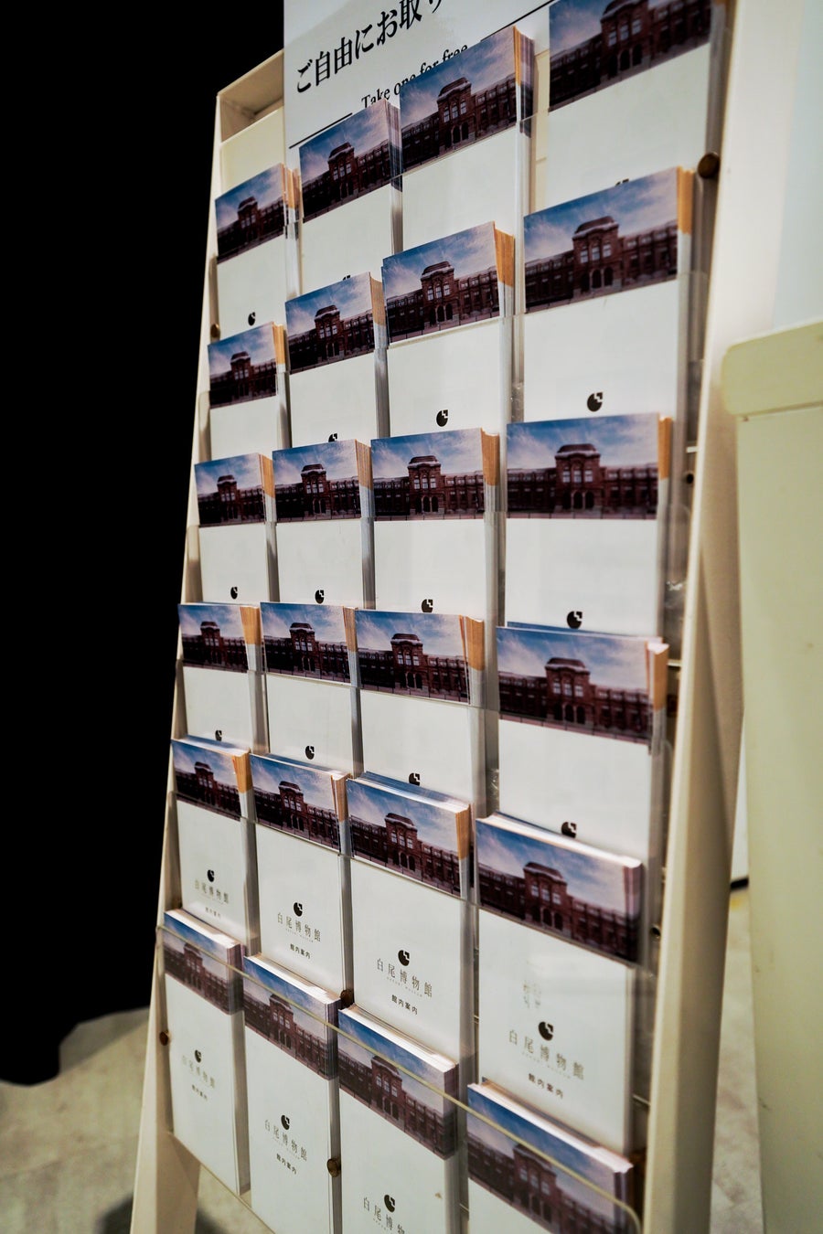 この展示イベントは、架空の博物館『白尾博物館』で開催されているという設定。会場の入り口には本物さながらに作りこまれた『白尾博物館』のリーフレットが置かれ、世界観により没入できる仕掛けを凝らしている。
