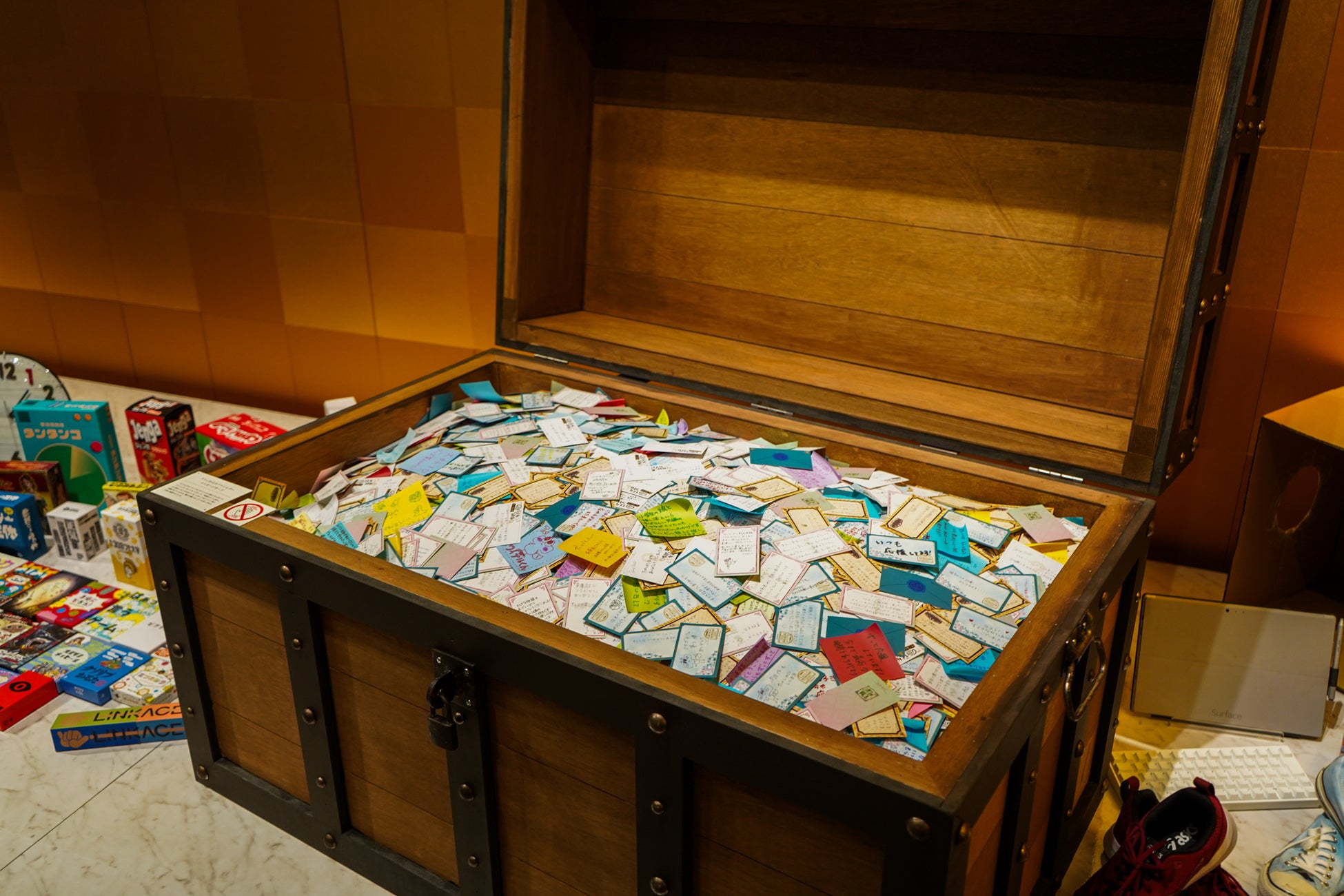 「第四展示室にあるものはそれもこれも僕らの宝物。動画に登場したものをたくさん飾らせていただきました。闇鍋企画の鍋の再現もあったりするんですよ(笑)。中でもいちばんの宝物は、イベントなどで皆さんからいただいたメッセージを入れたBOX。すべて捨てずに取っていて、それを全部持ってきました。僕らの活動の原動力ともいえる存在です。今回の展示の最後にもメッセージが書けるスポットを用意したので、ぜひこの展示についての感想を聞かせてほしいです」