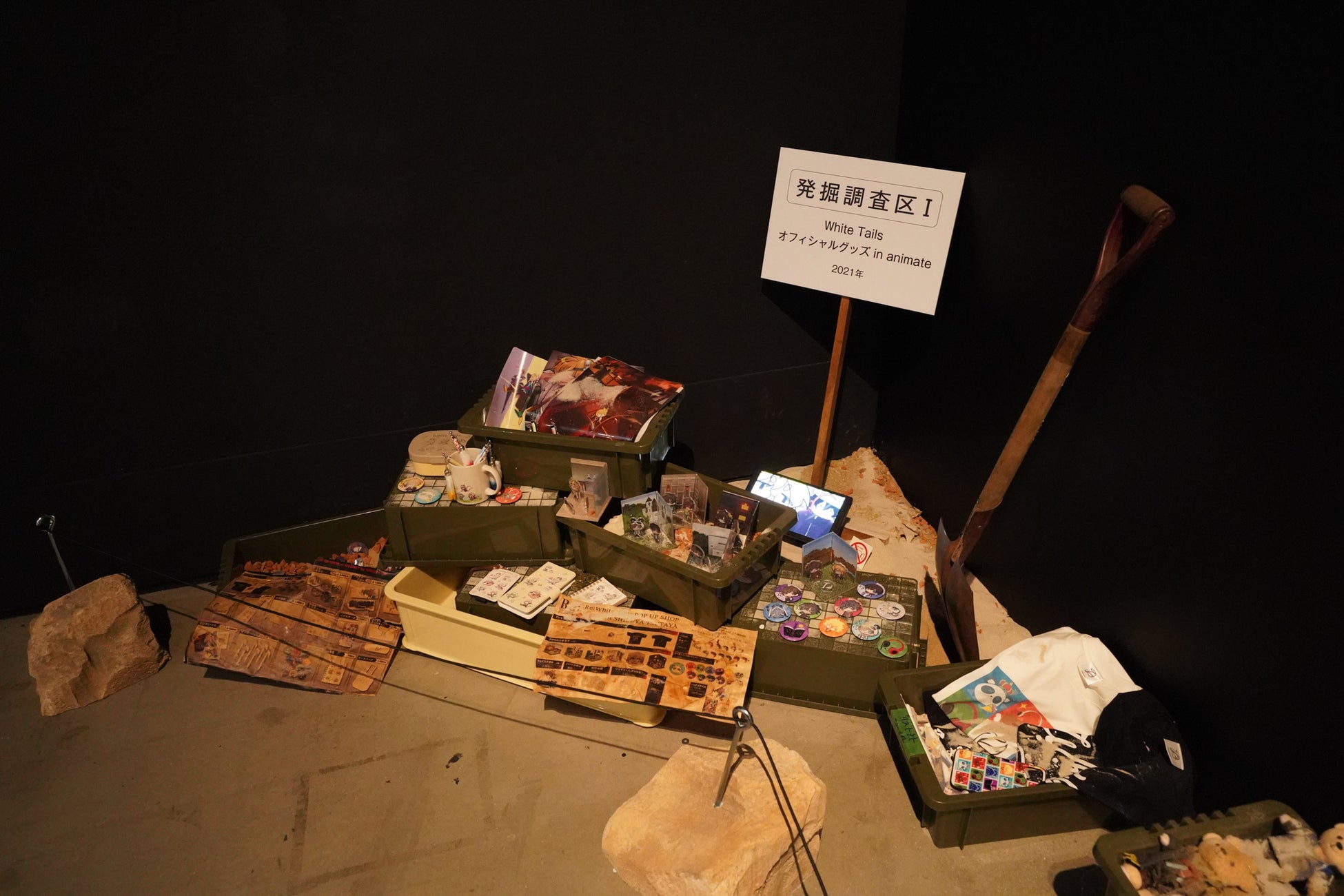 これまでイベントなどで発売したグッズが置かれた第三展示室は、化石や土器の発掘を思わせるディスプレイに。中にはレアなアイテムも。