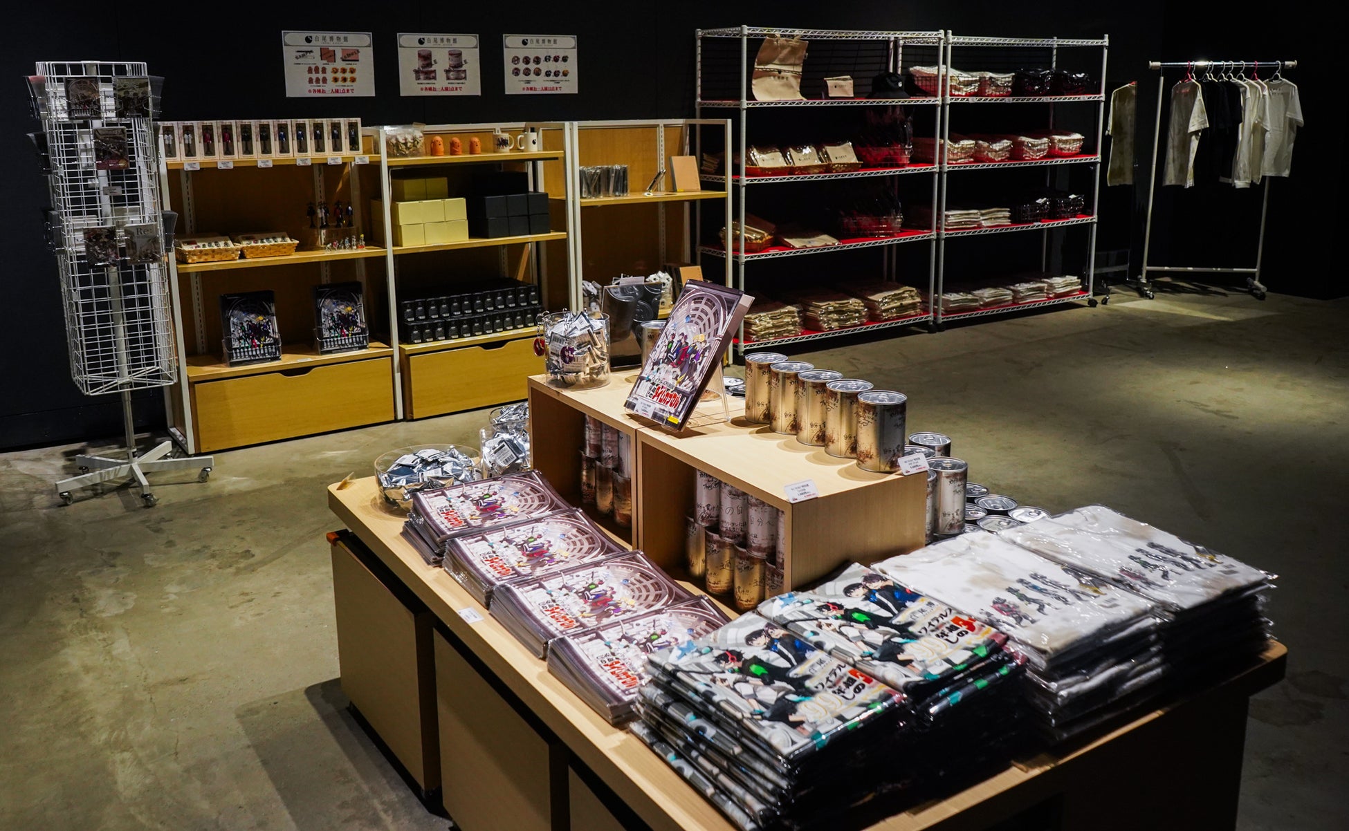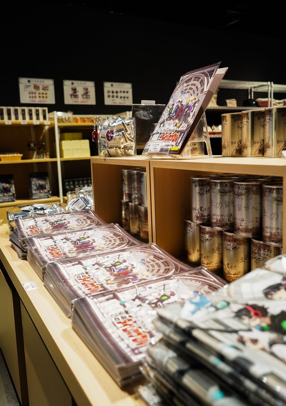 会場内にはミュージアムショップも。「白尾博物館展 特別展示: 99年越しのタイムカプセル」の公式パンフレットやグッズが立ち並ぶ。