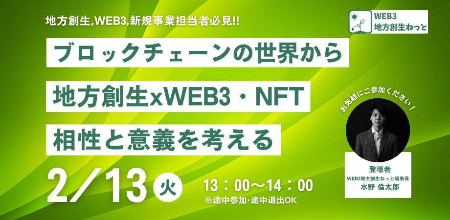 ■2月13日「ブロックチェーンの世界観から考える地方創生xWEB3/NFTの相性と意義」